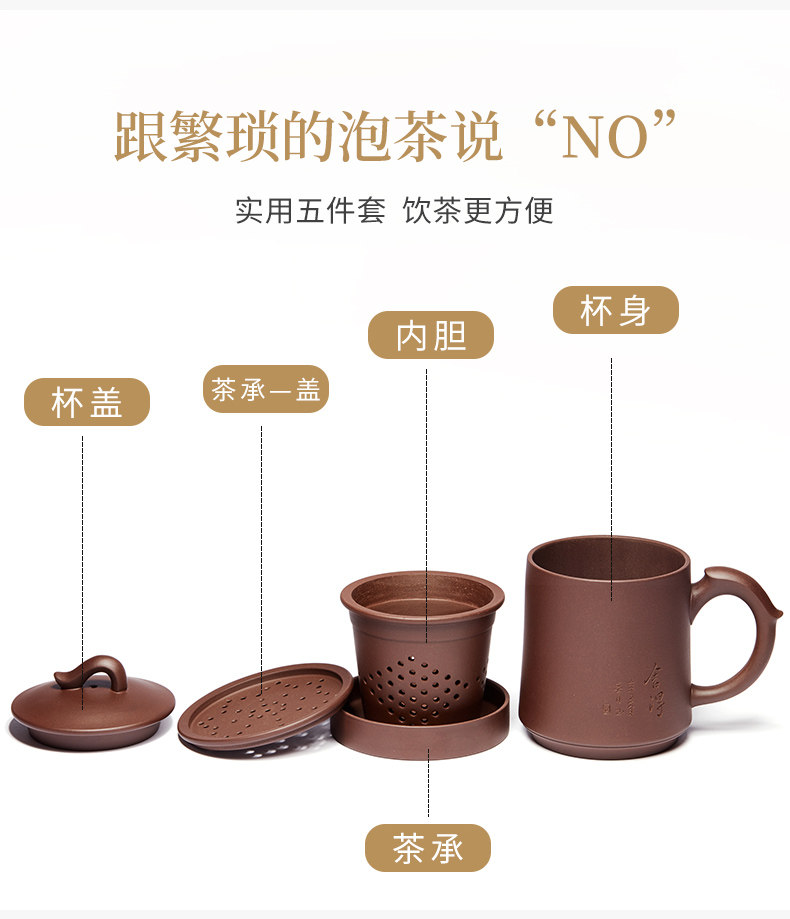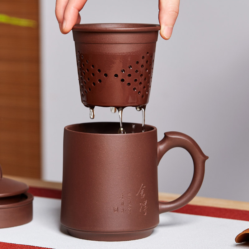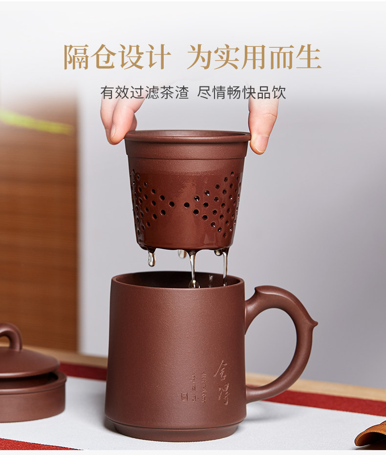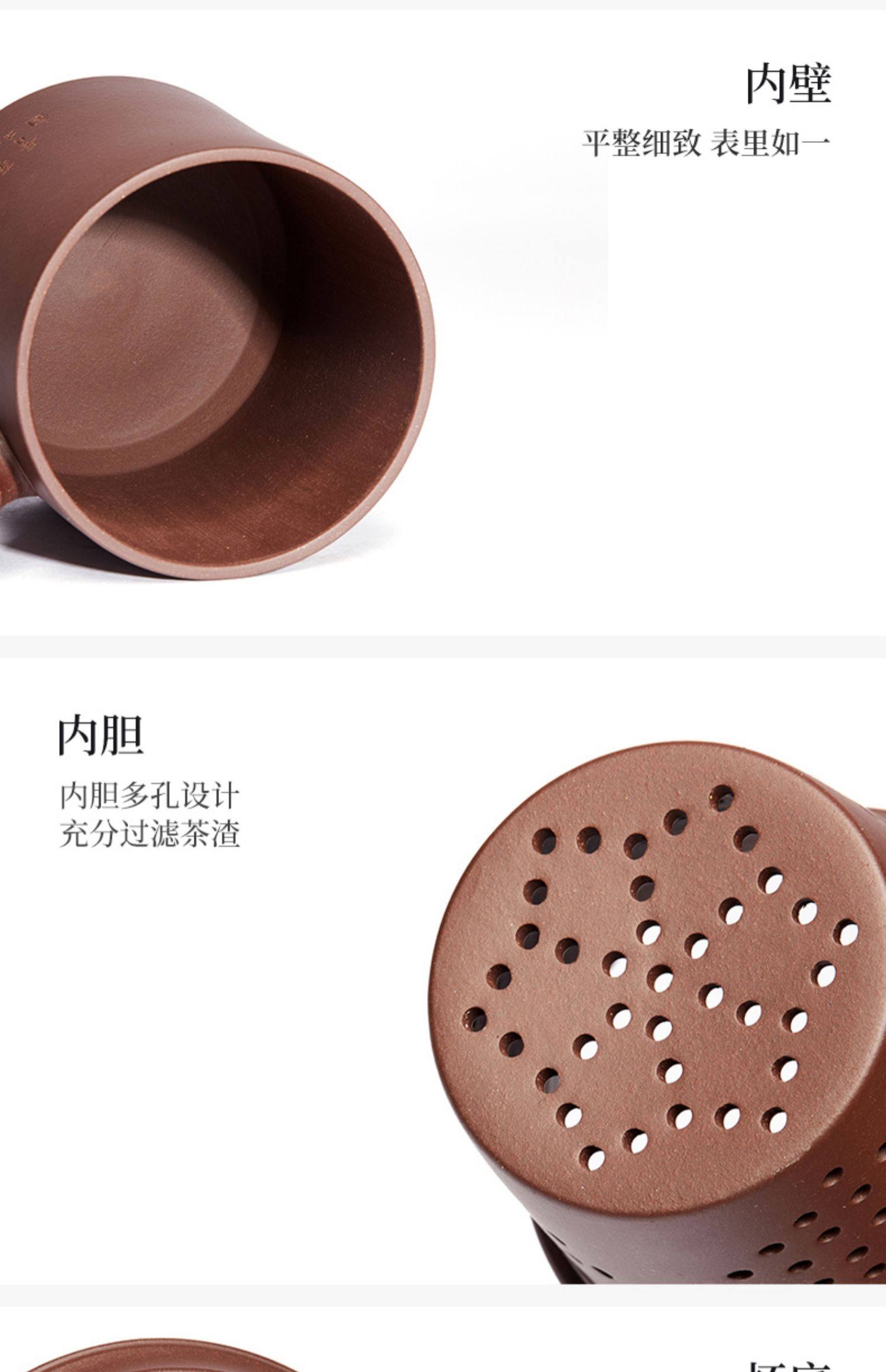 紫砂泡茶杯茶水分离纯全手工办公盖杯内胆过滤带把水杯子茶具