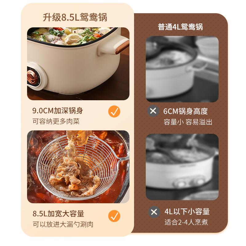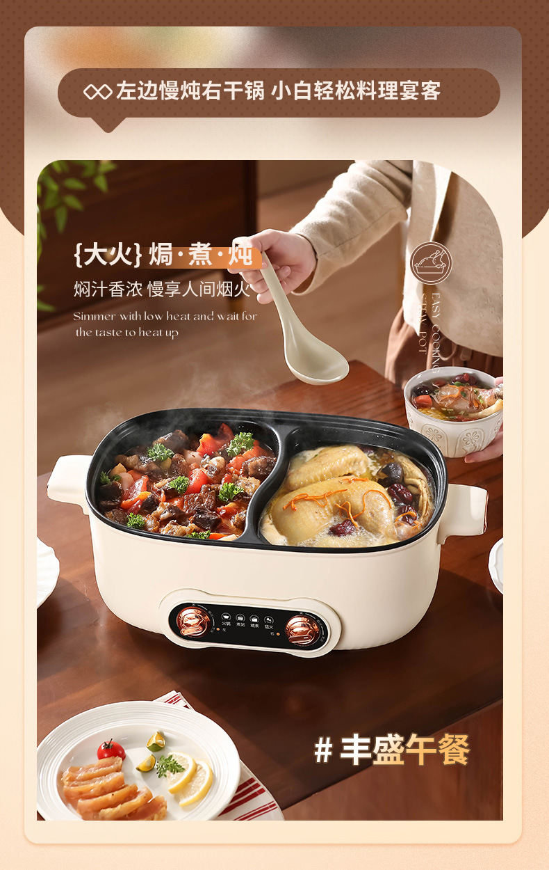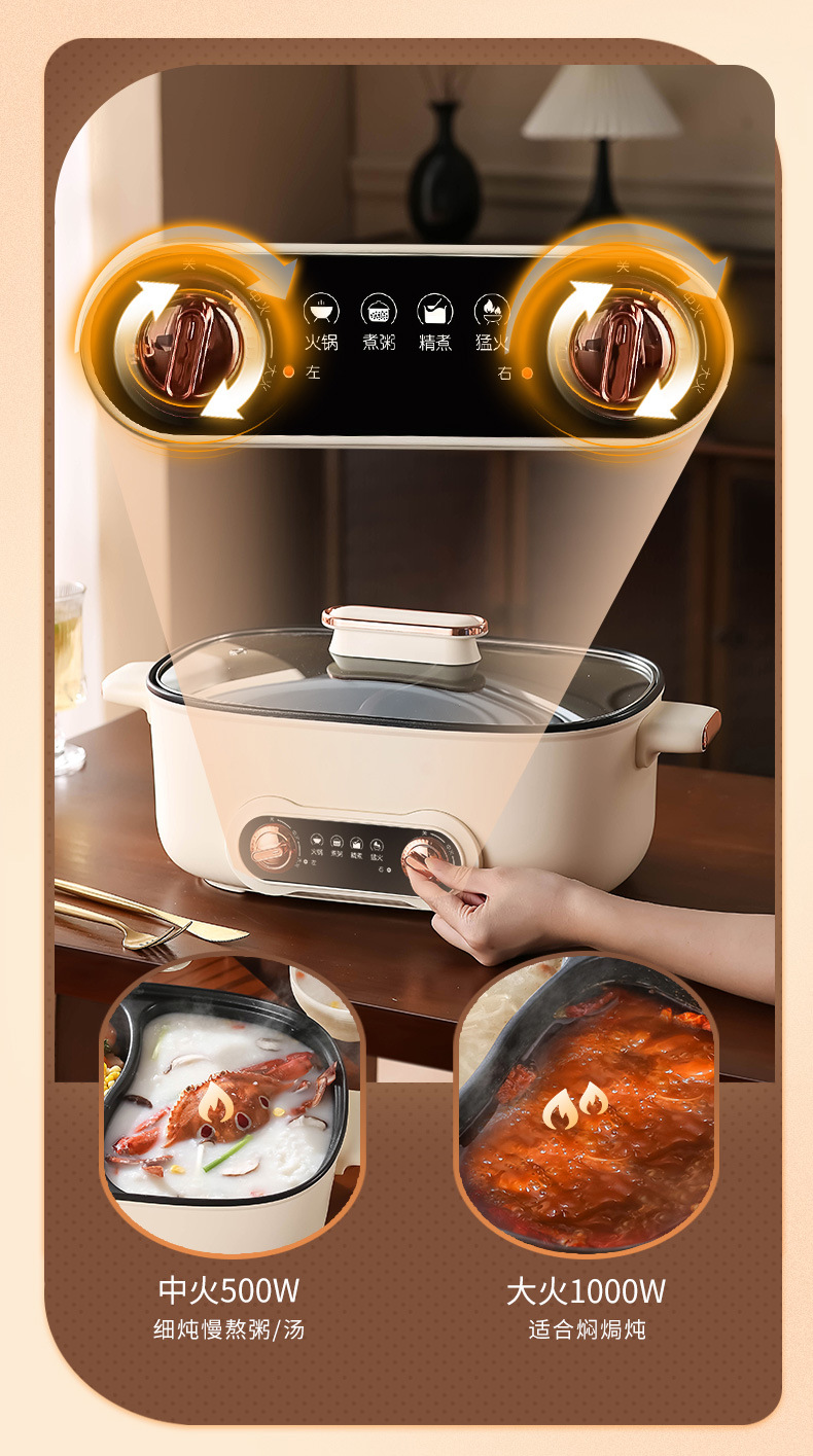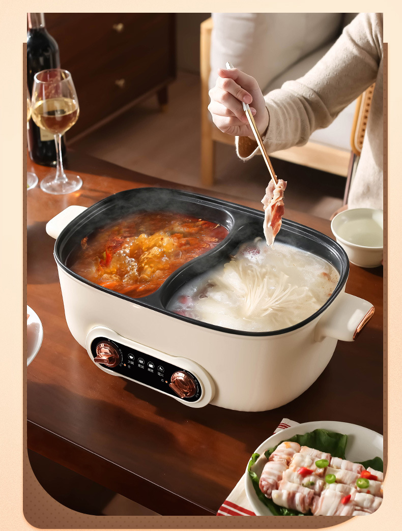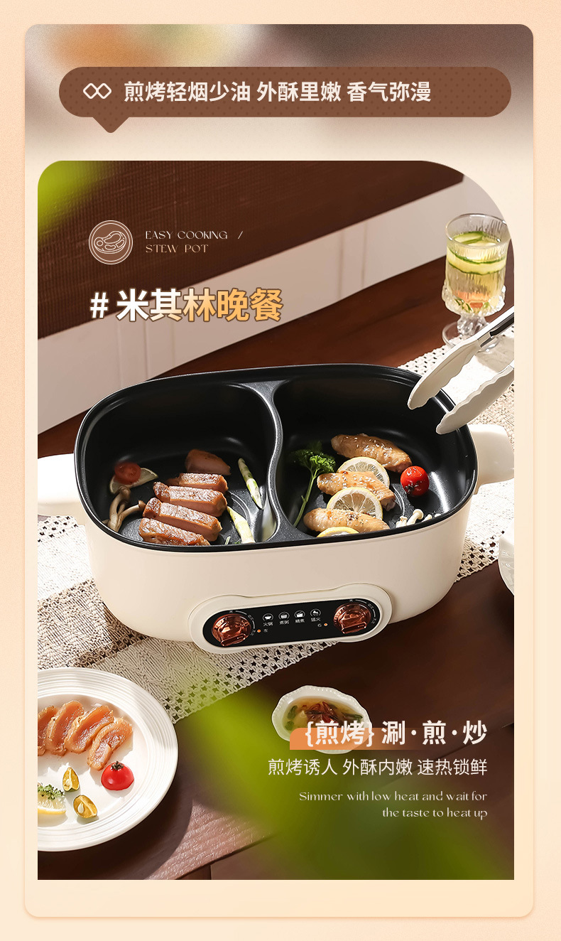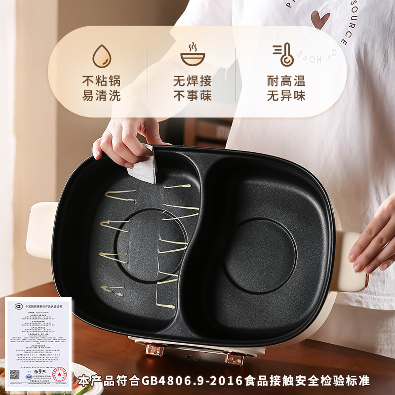 鸳鸯锅火锅家用多功能一体成型蒸煮煎炒烤肉电火锅电煮锅宿舍电锅