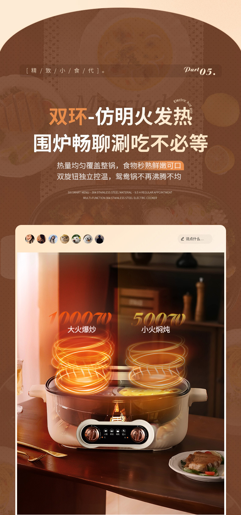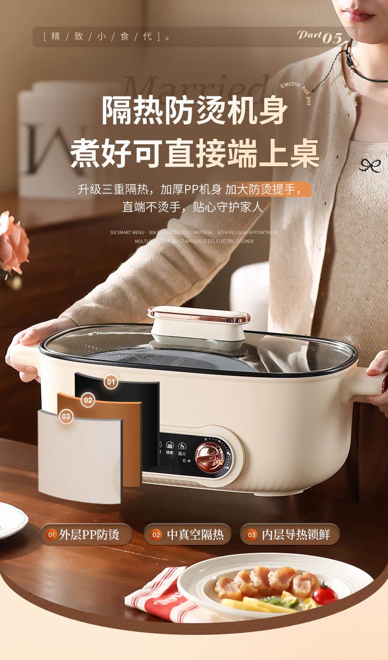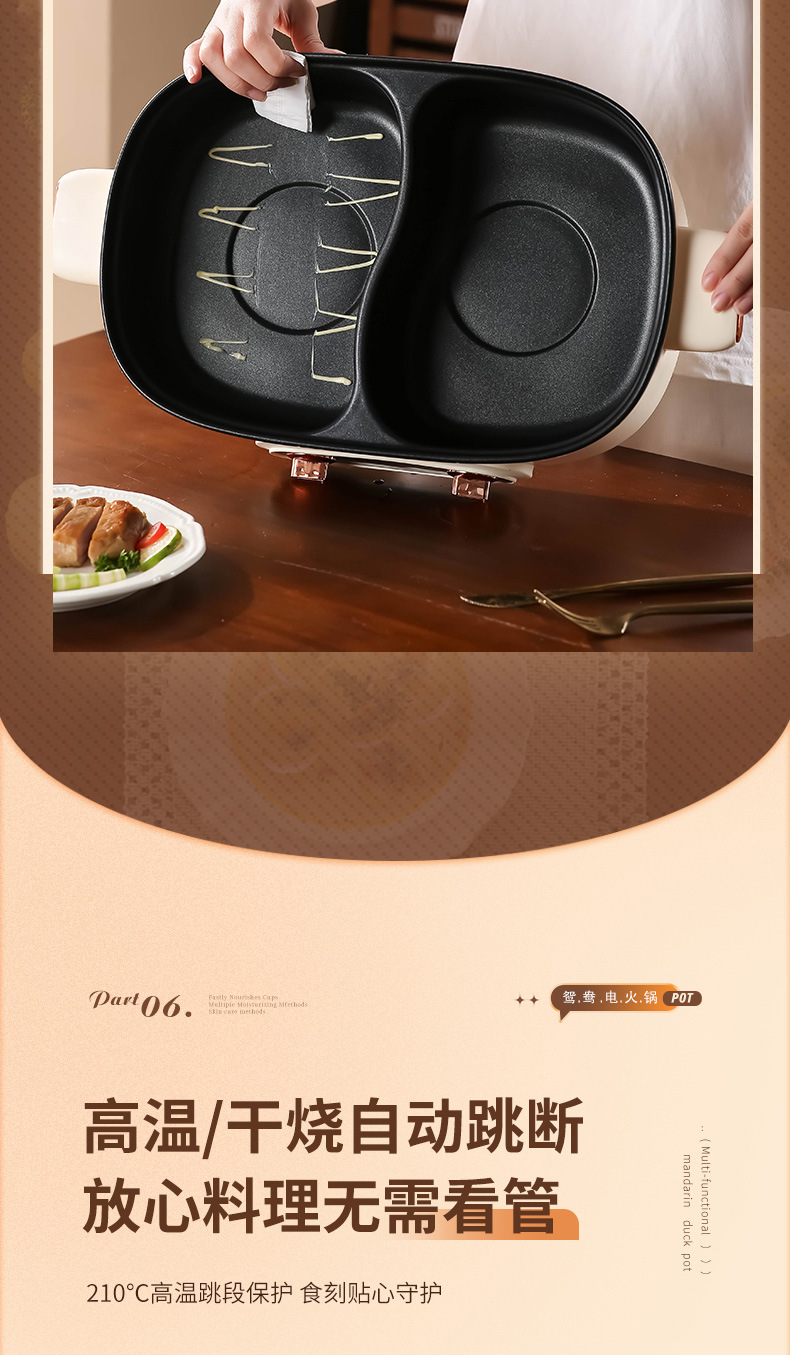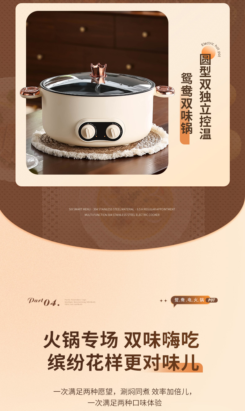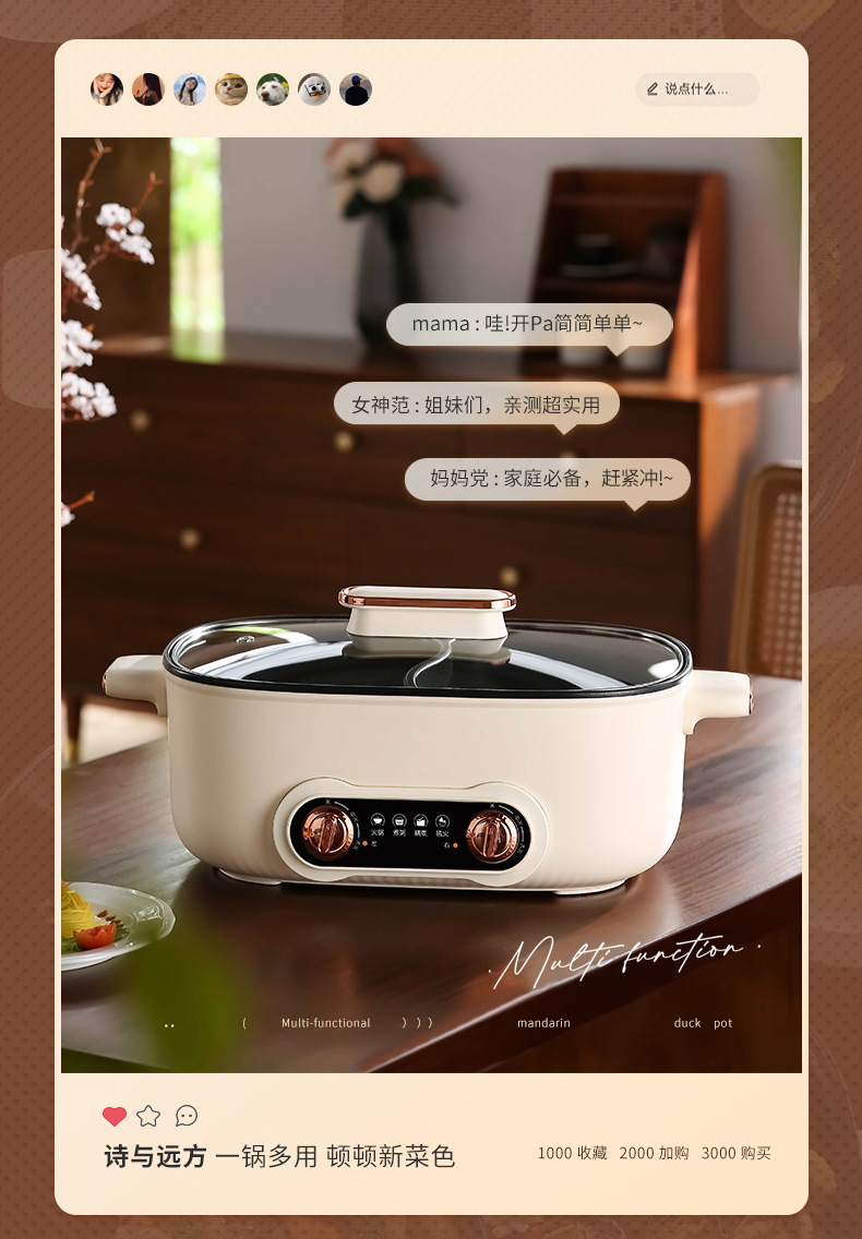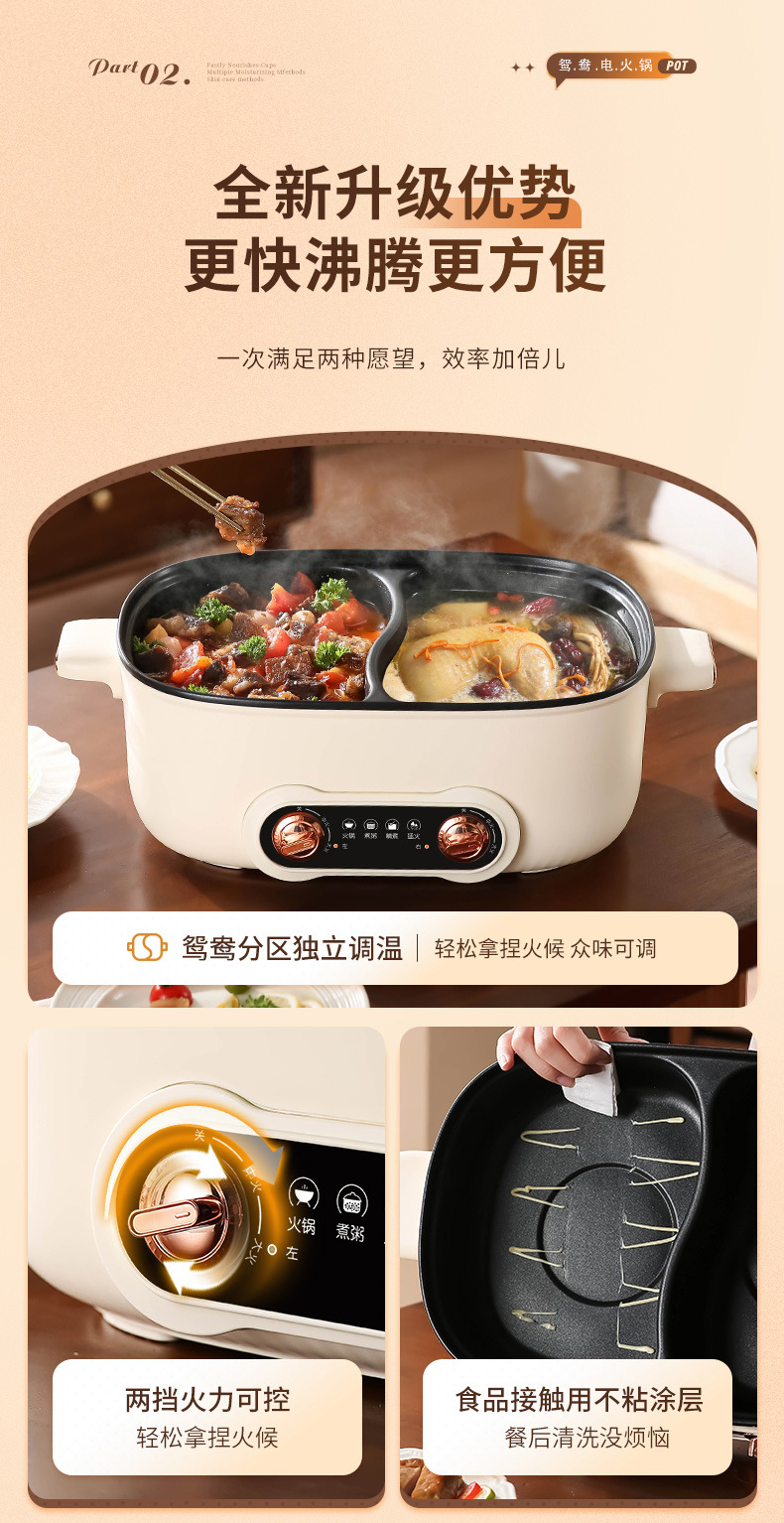 鸳鸯锅火锅家用多功能一体成型蒸煮煎炒烤肉电火锅电煮锅宿舍电锅