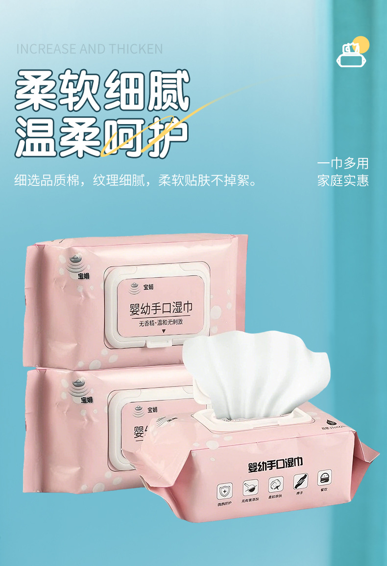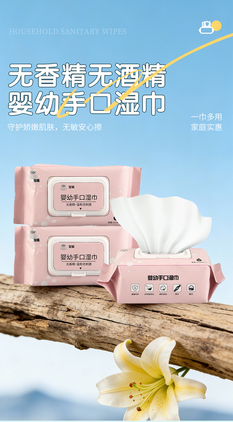 宝娟100抽婴幼手口卫生湿巾家用儿童婴幼儿洗脸擦脸清洁湿