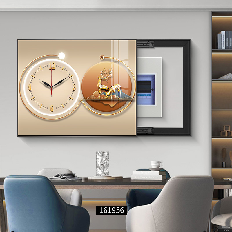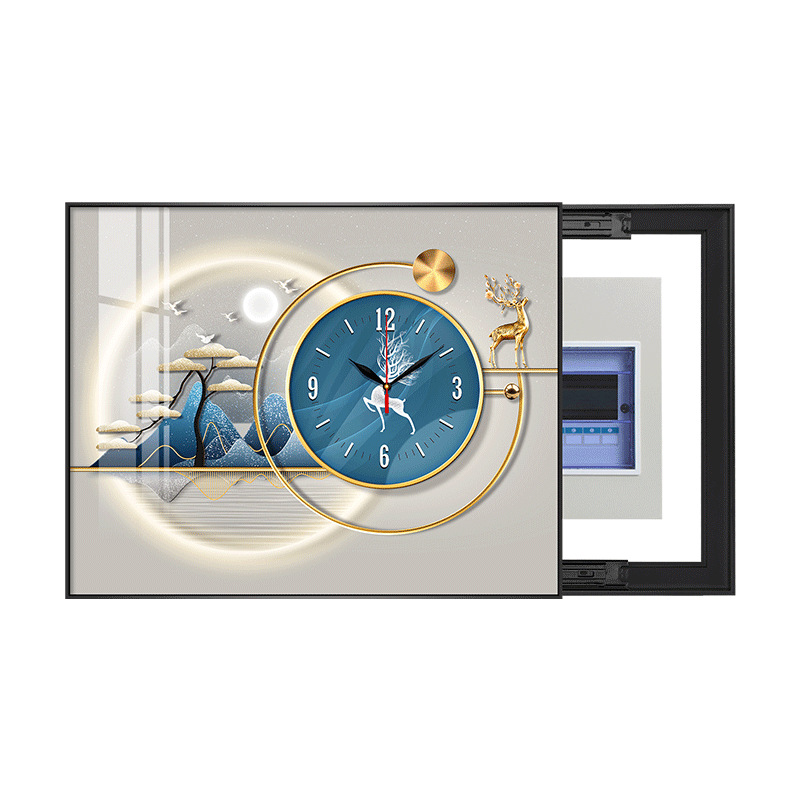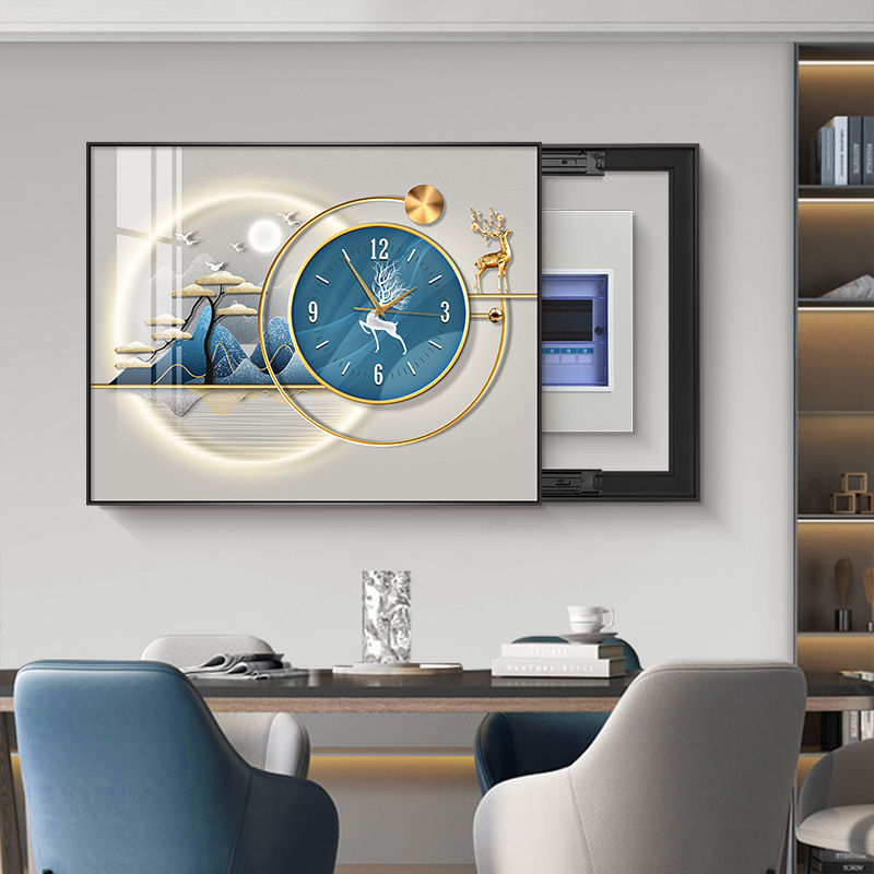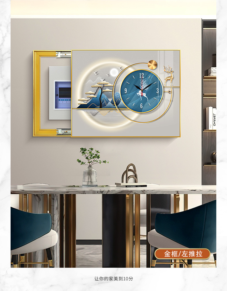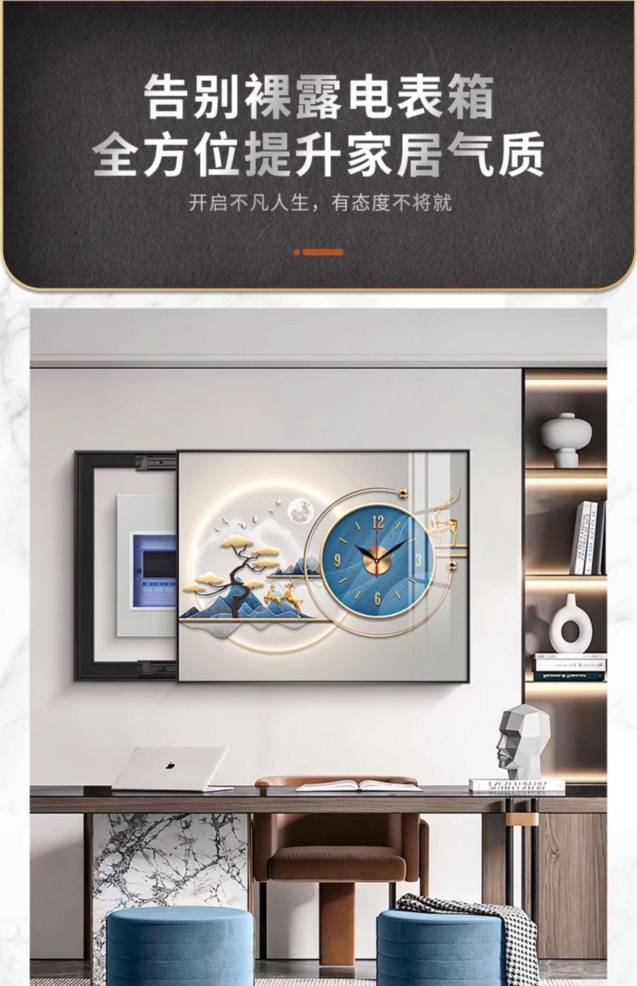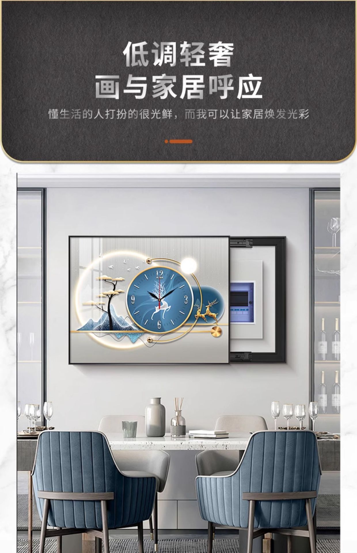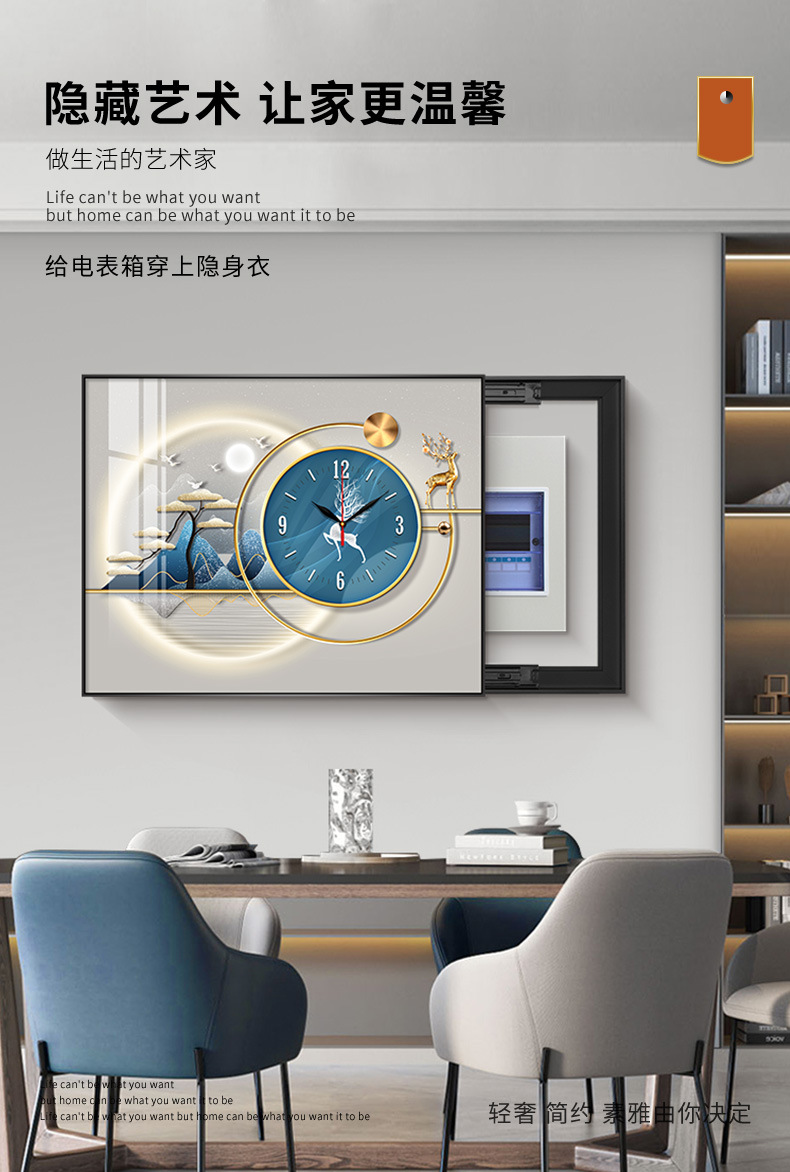北欧轻奢电表箱装饰画带钟表新款弱电箱遮挡时钟免打孔开关盒挂画