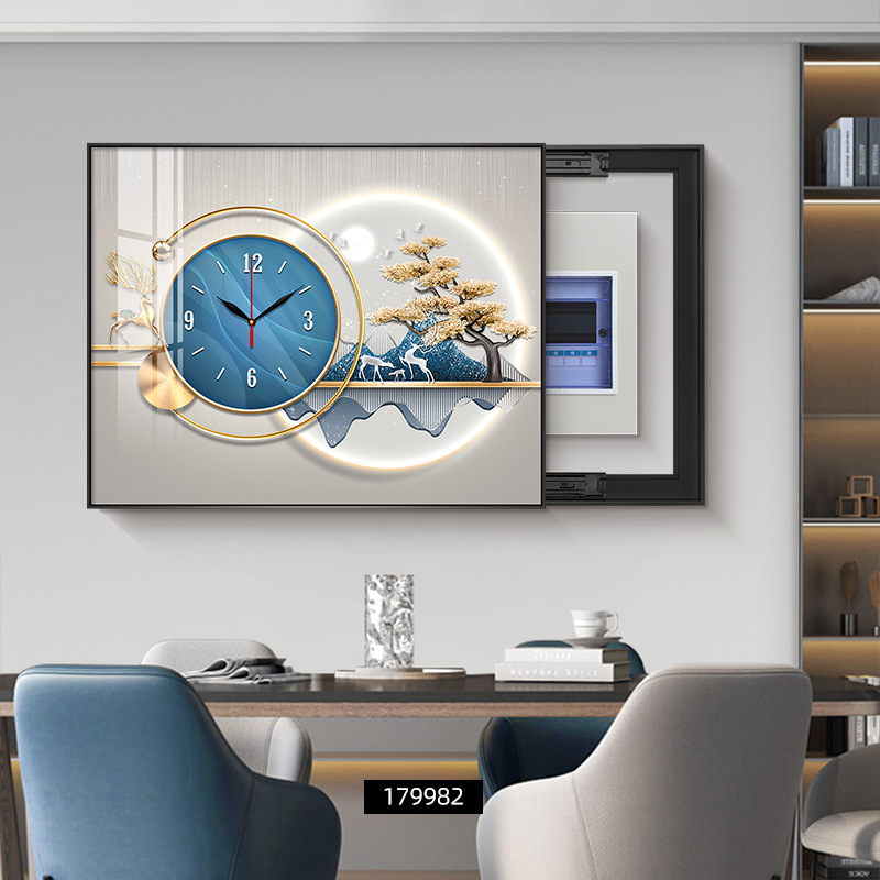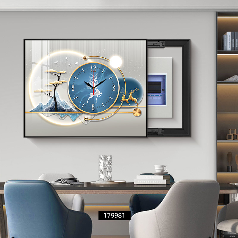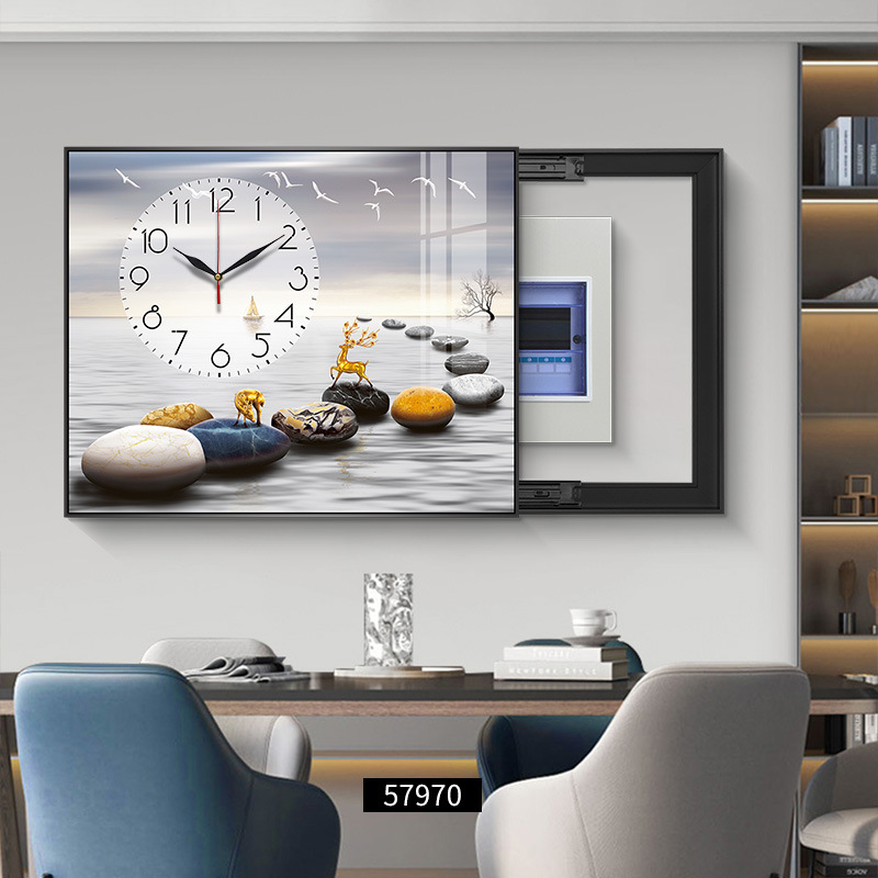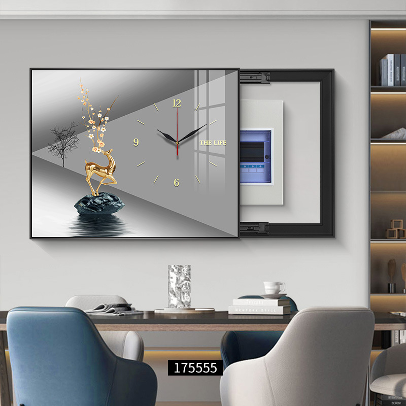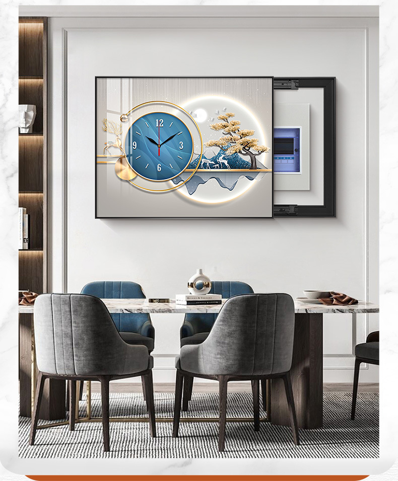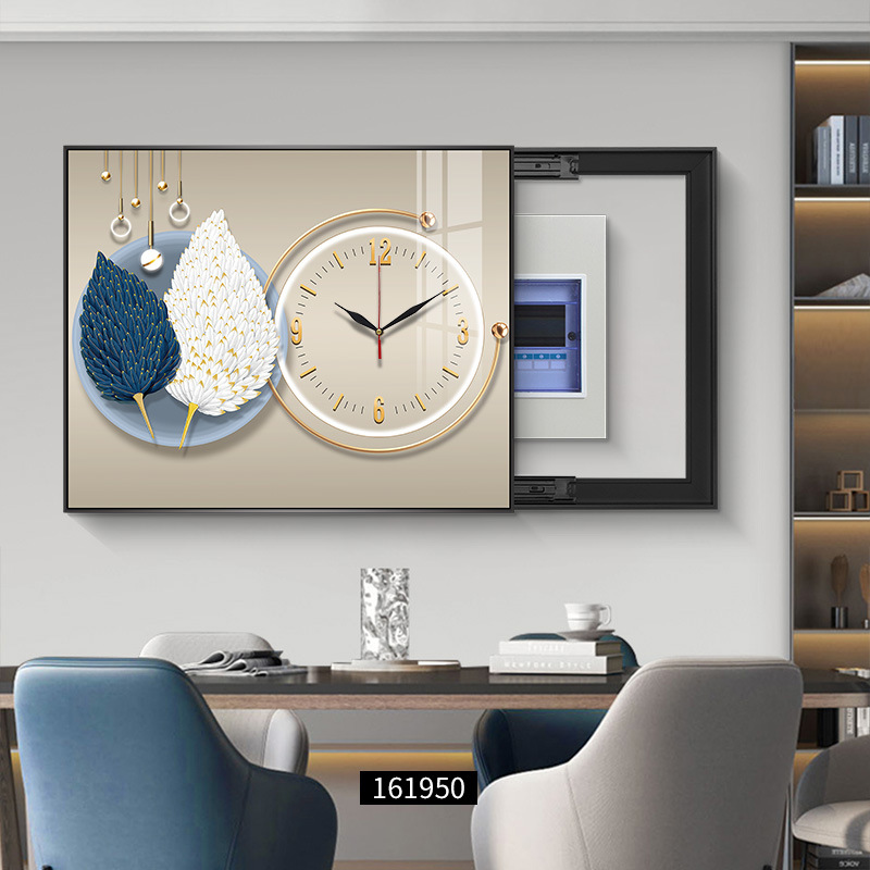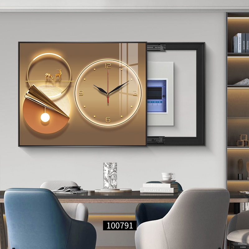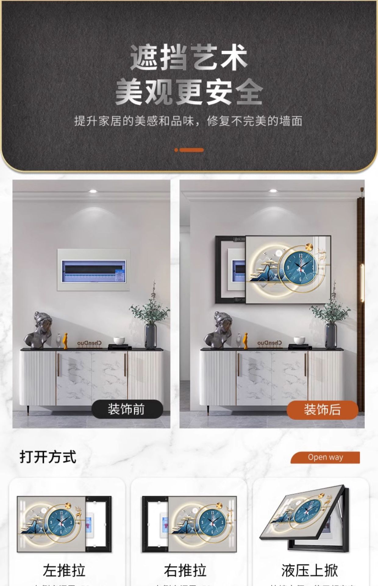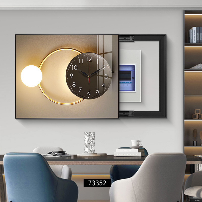 北欧轻奢电表箱装饰画带钟表新款弱电箱遮挡时钟免打孔开关盒挂画
