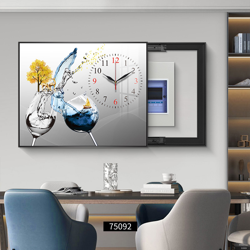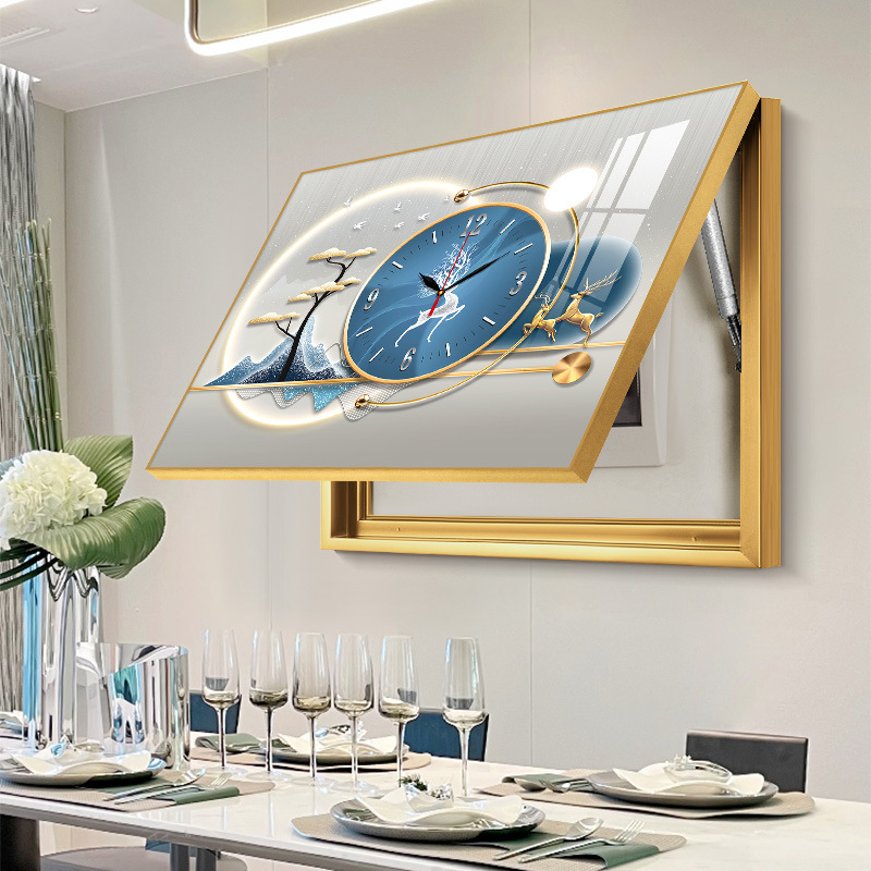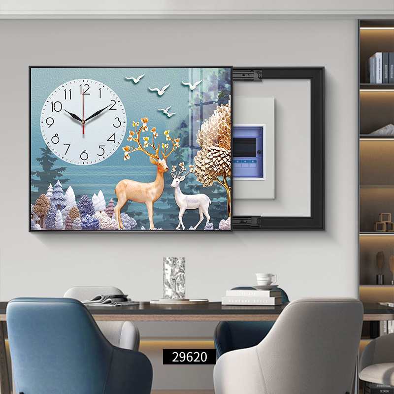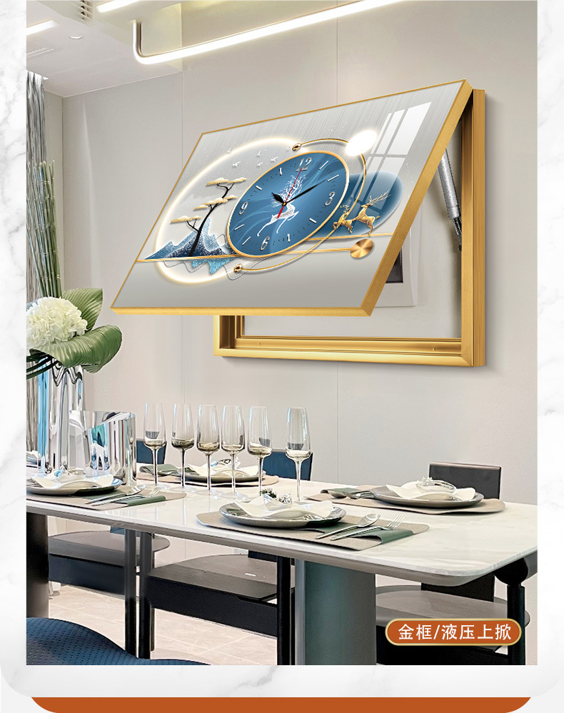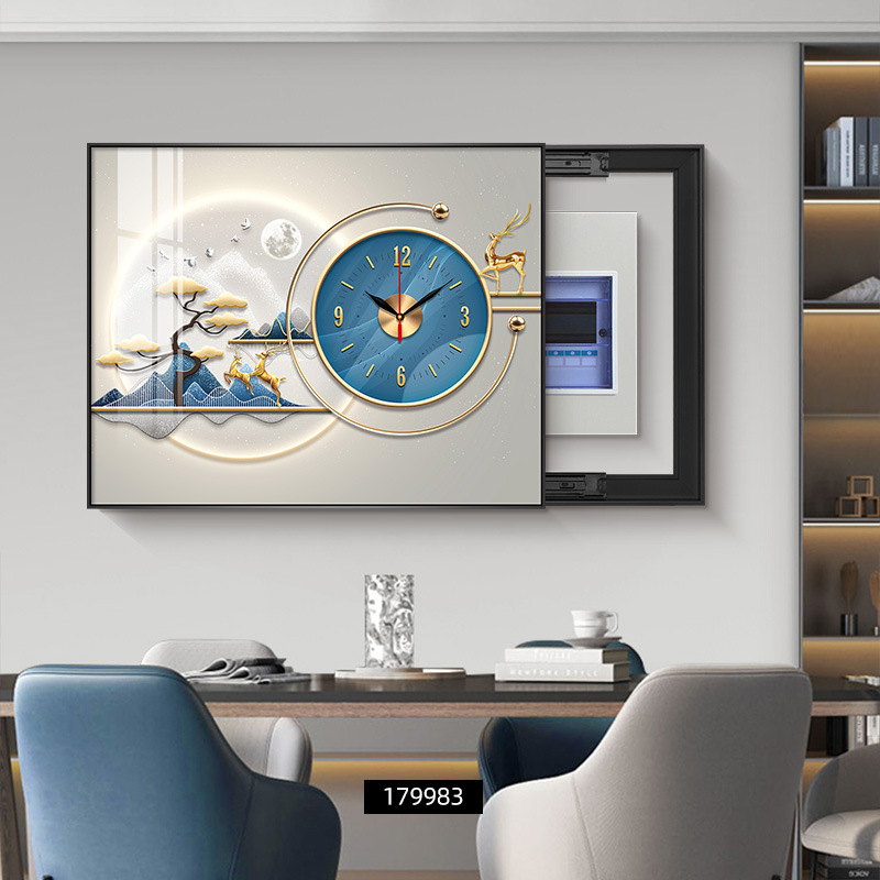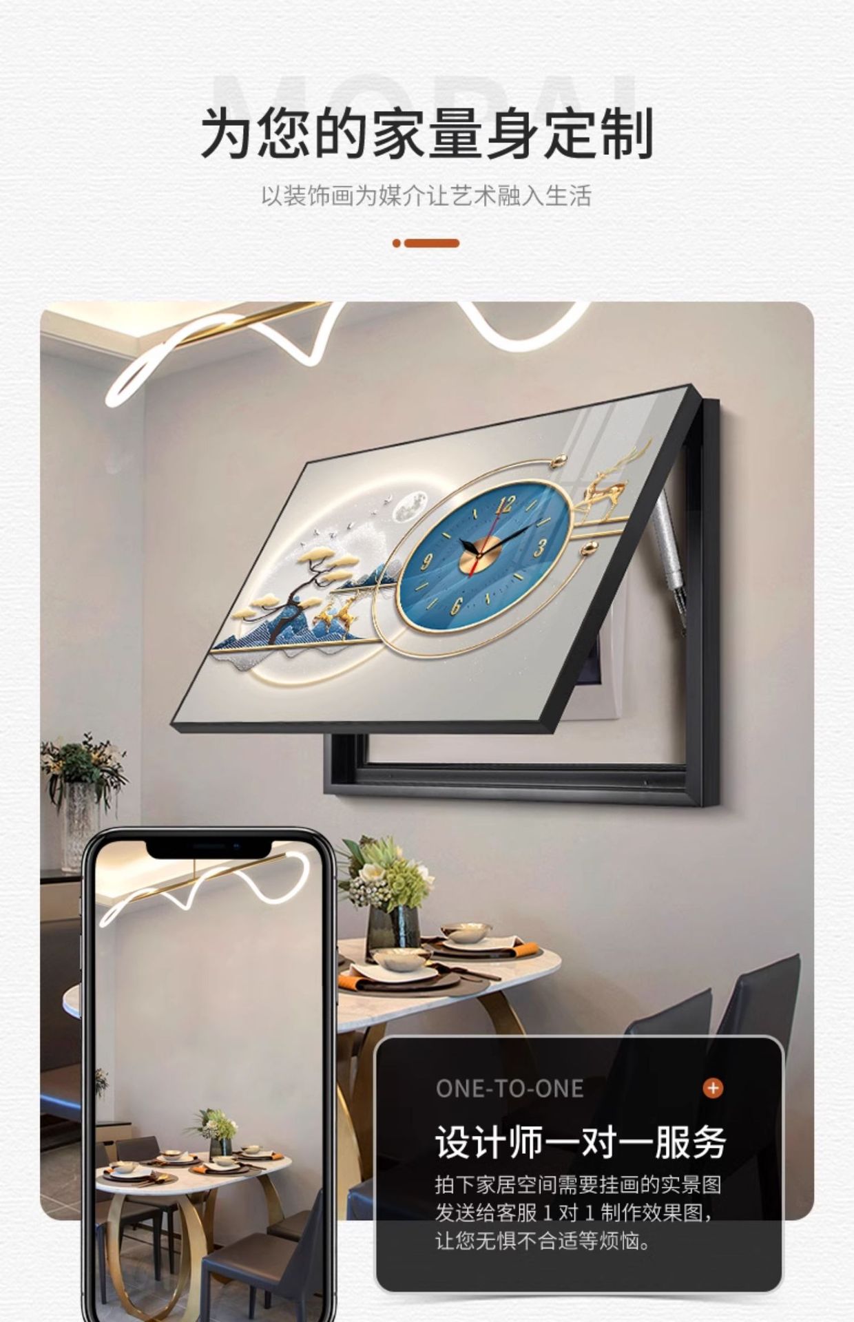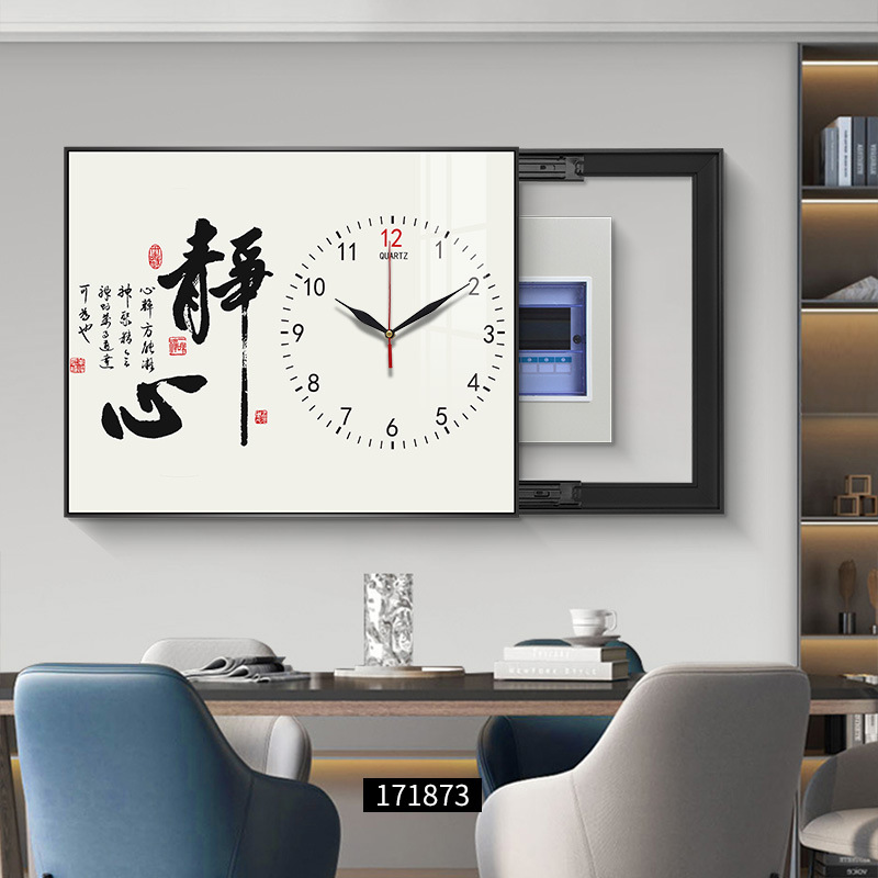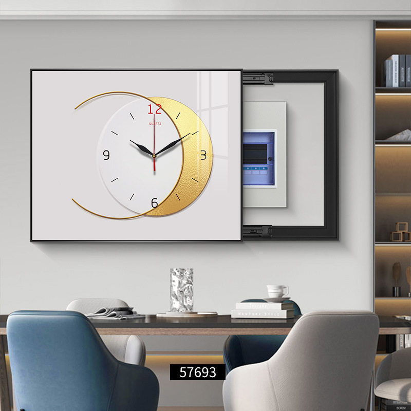 北欧轻奢电表箱装饰画带钟表新款弱电箱遮挡时钟免打孔开关盒挂画