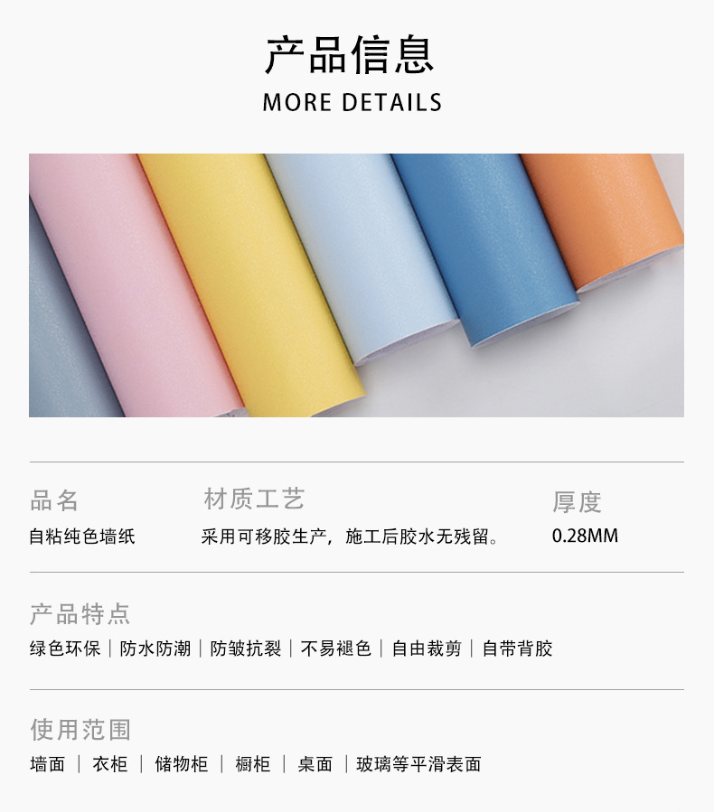 墙纸自粘出租房卧室莫兰迪壁纸PVC背景墙贴纸防水防潮纯色墙贴