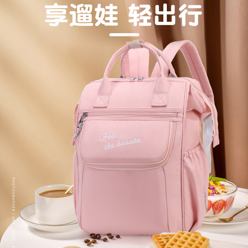 妈咪包新款多功能时尚防泼水大容量宝妈出行收纳母婴双肩背包
