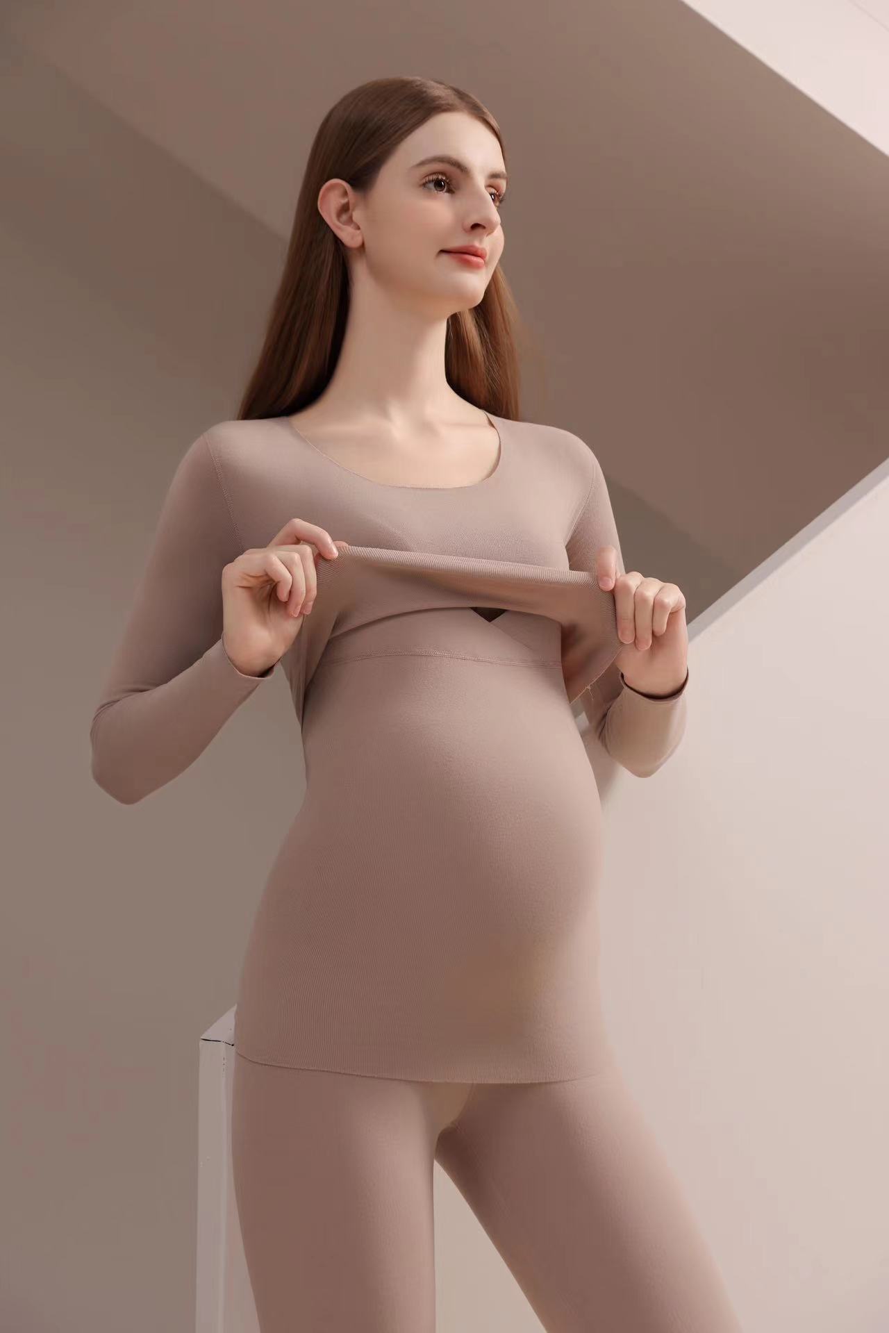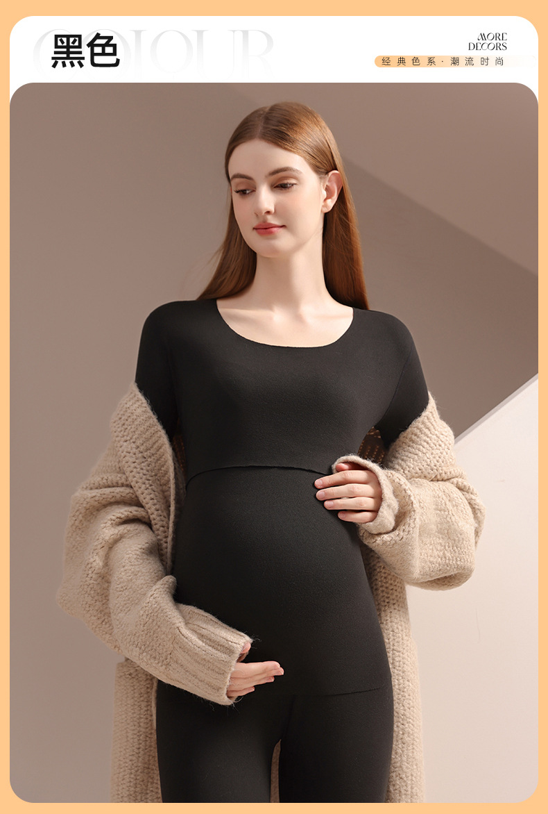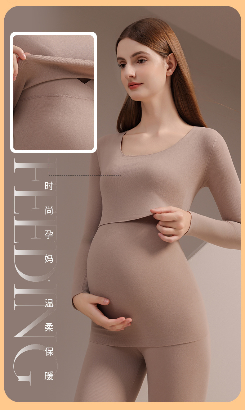 孕妇德绒秋衣秋裤保暖套装秋冬产后哺乳月子服睡衣7A打底衣家居服