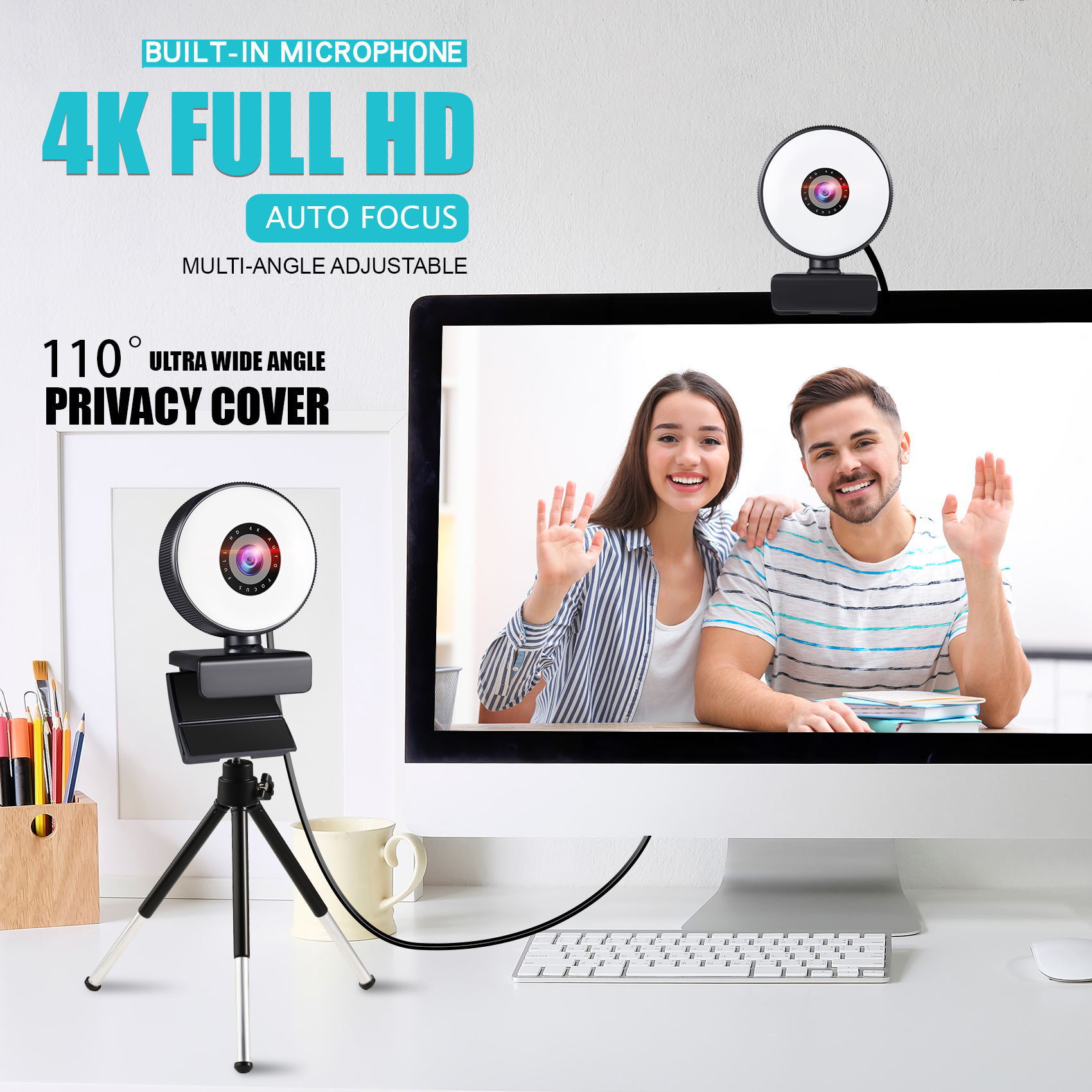4k私模美颜自动对焦1080p电脑摄像头高清触控USB直播webcam2k补光