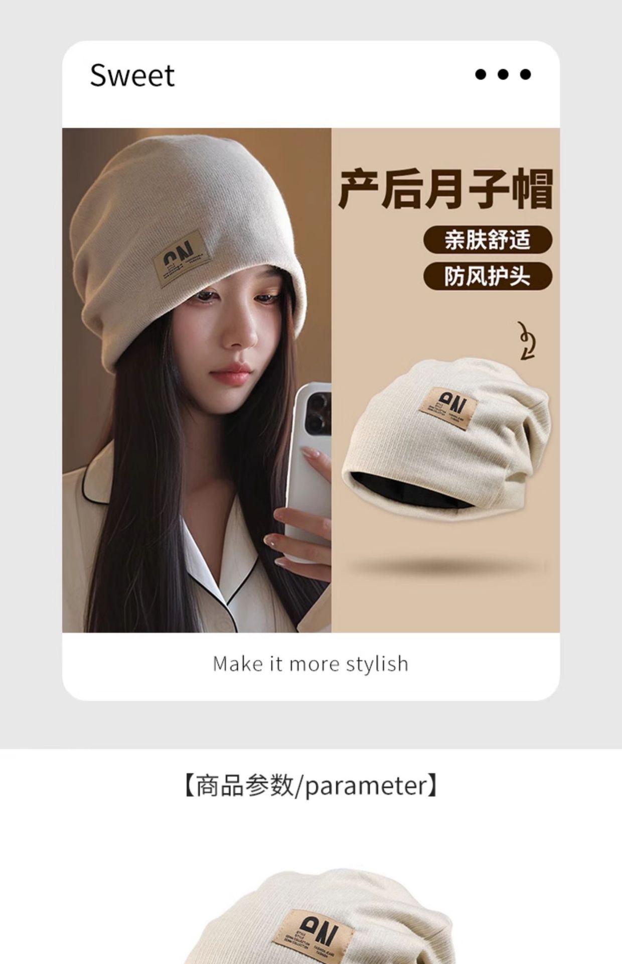 百款搭显脸小大头围堆堆帽防寒月子帽套头帽女春秋季保暖包头冷帽