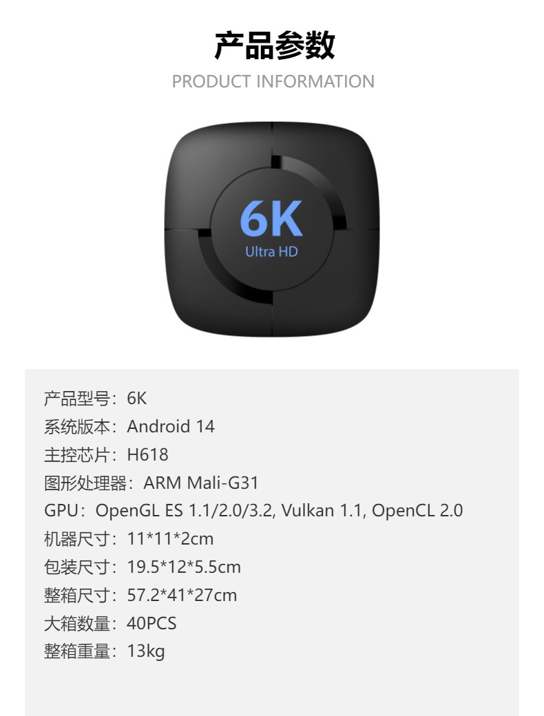 智能6K网络机顶盒H313无线高清家用投屏电视机盒子
