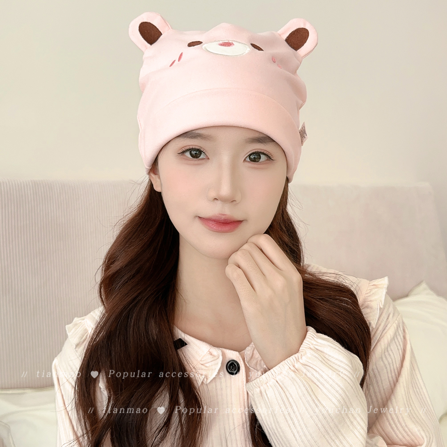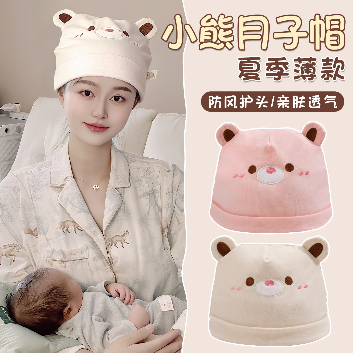 月子帽秋冬棉质孕妇睡觉可戴月子发带护额防风堆堆帽子大头围产后