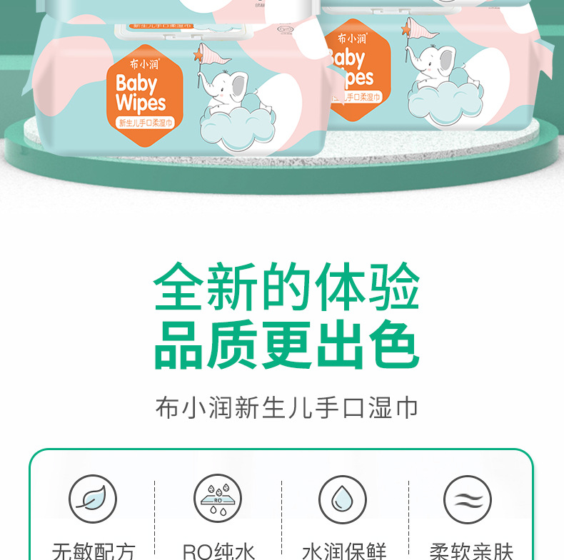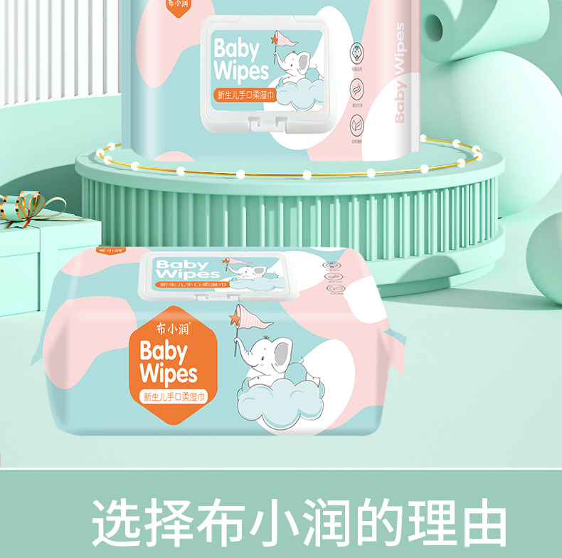 布小润婴儿手口湿巾大包装卫生清洁湿巾纸带盖宝宝湿纸巾