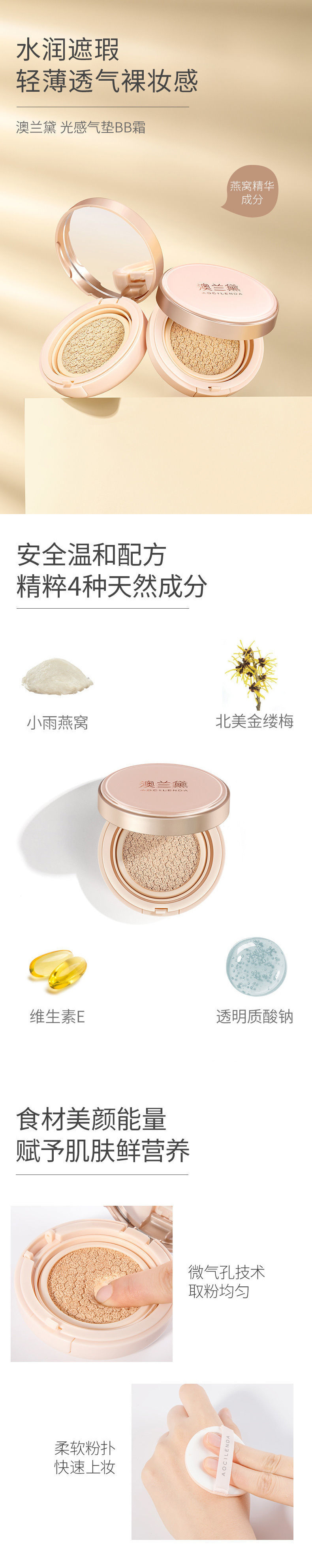 澳兰黛准孕妇气垫专用粉底液bb霜遮瑕水润裸妆感隔离霜