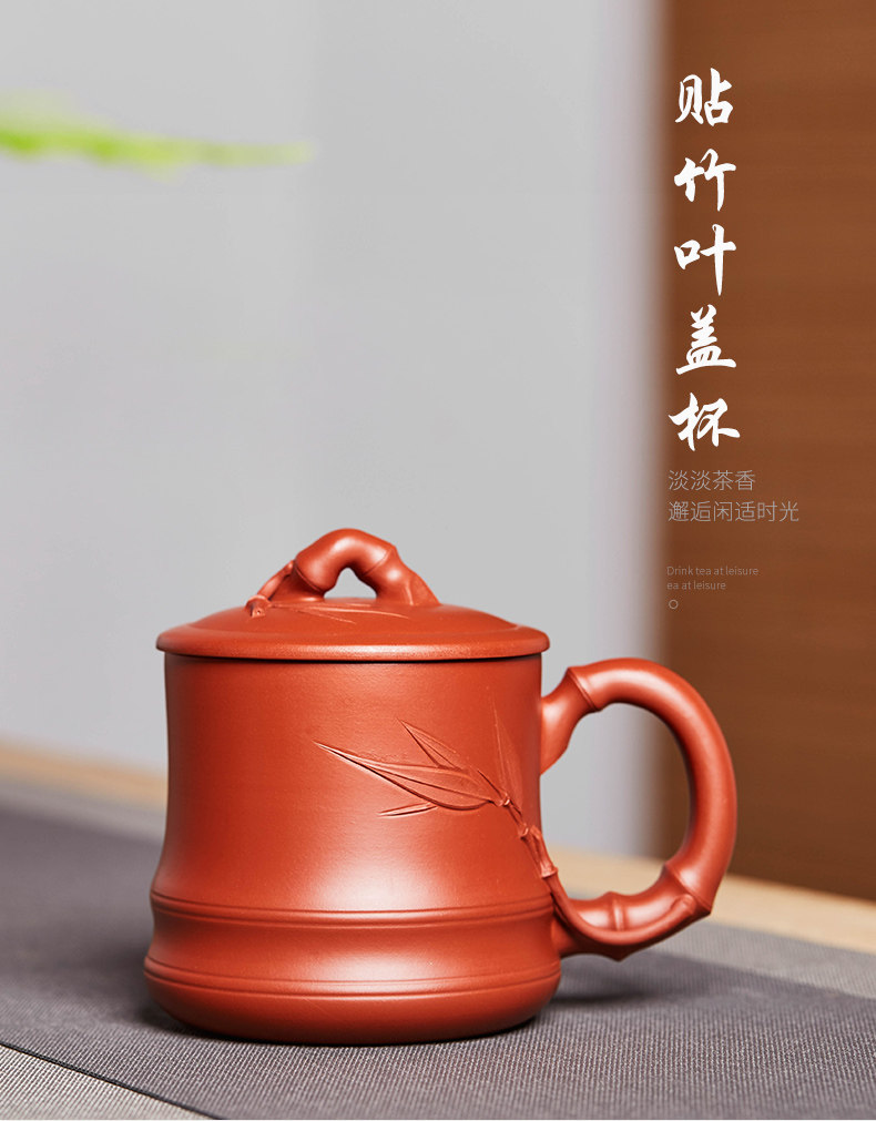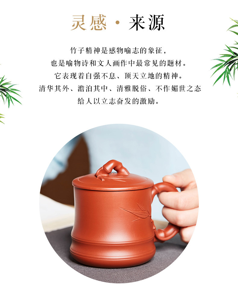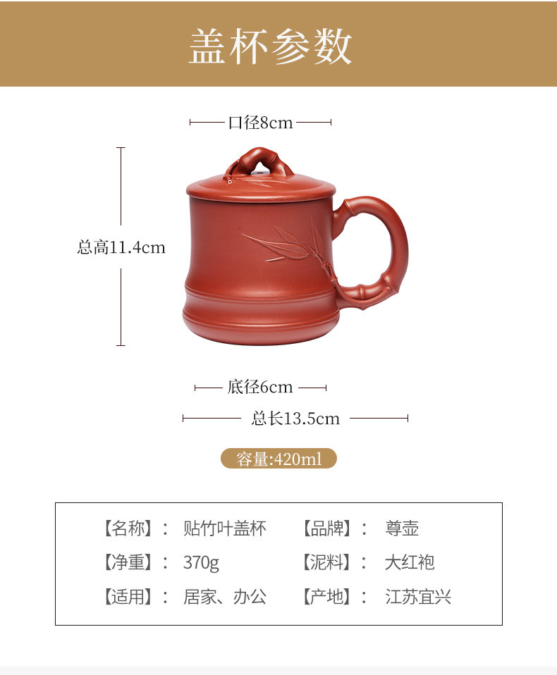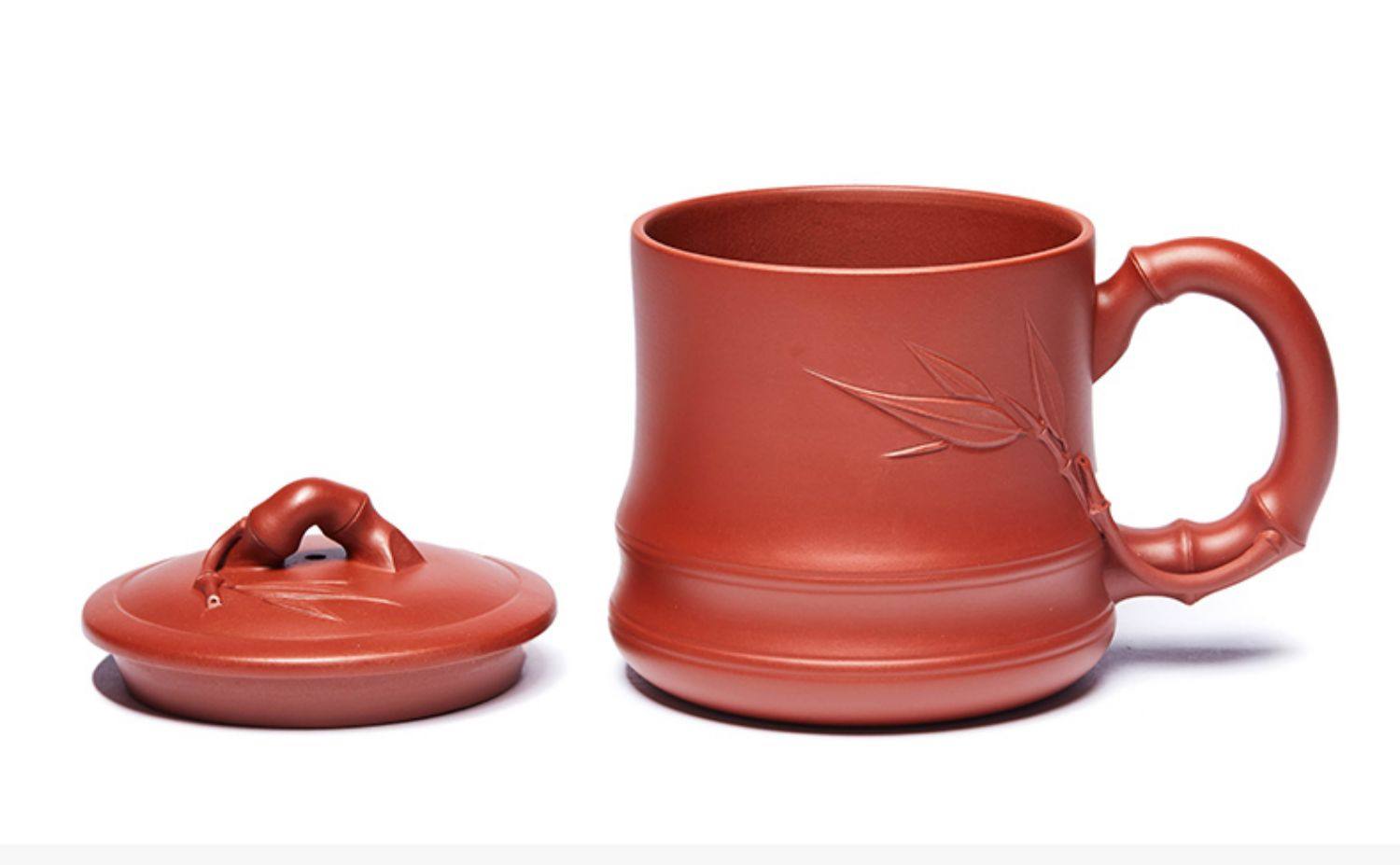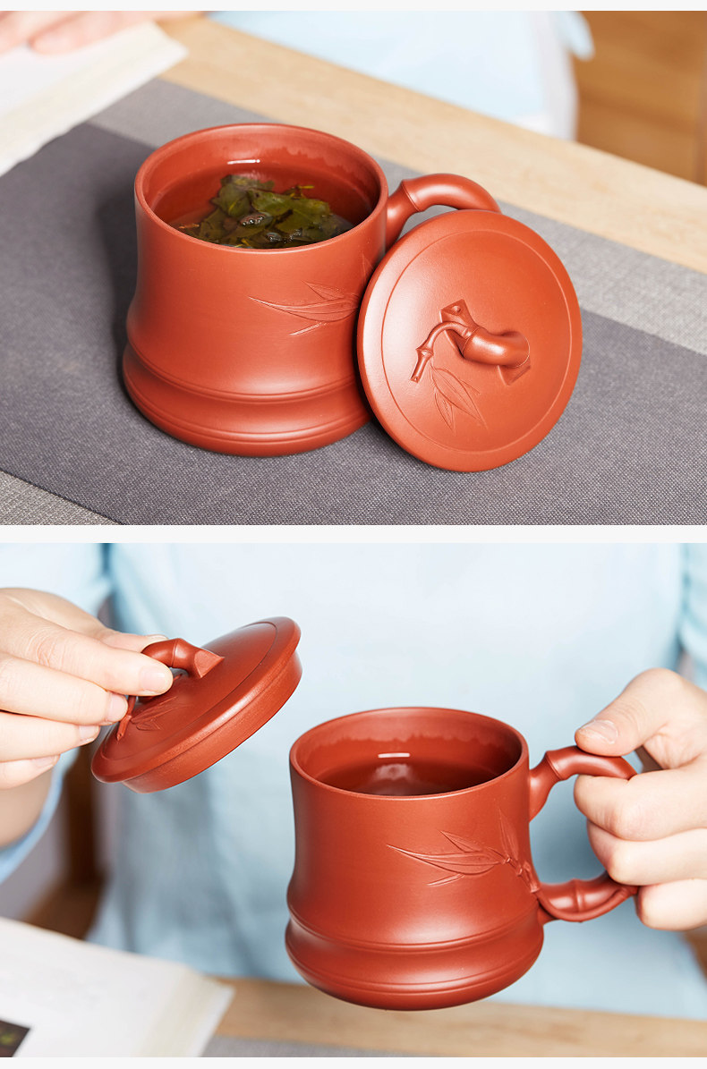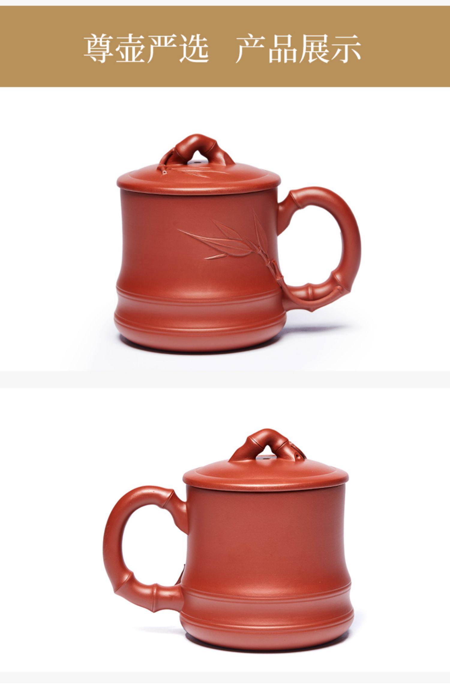 手工紫砂杯大容量带盖大红袍竹节水杯子陶瓷家用茶杯茶具