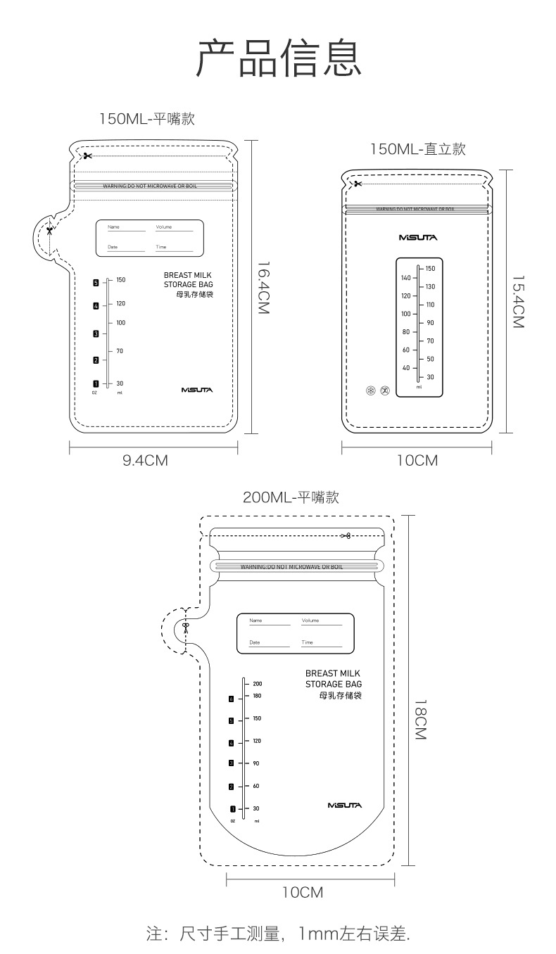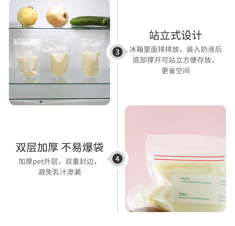 储奶袋母乳存储袋一次性装奶袋真空袋大容量冷冻双轨直立密封袋