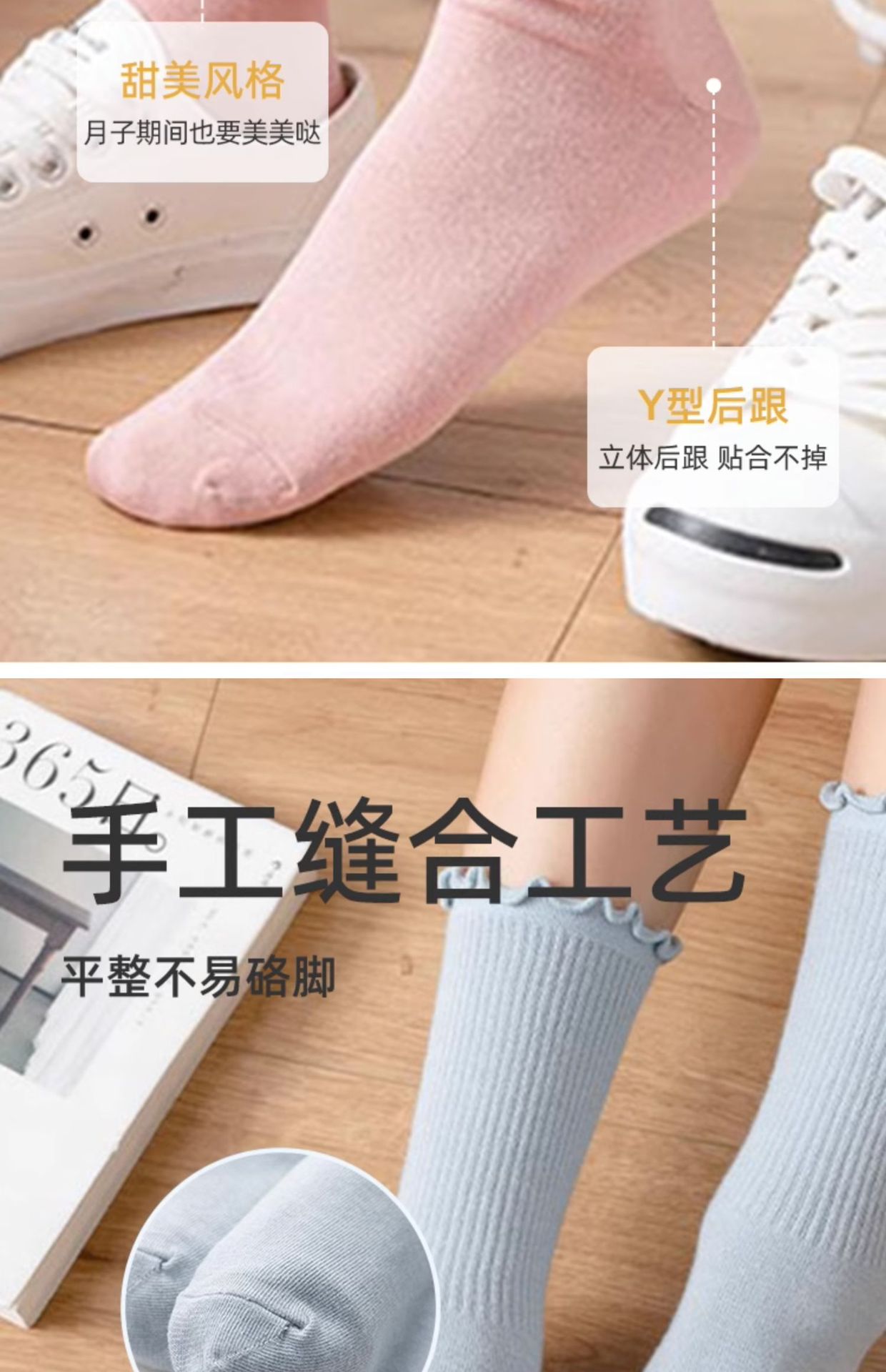 - 【4双装】黑色+白色+粉色+蓝色