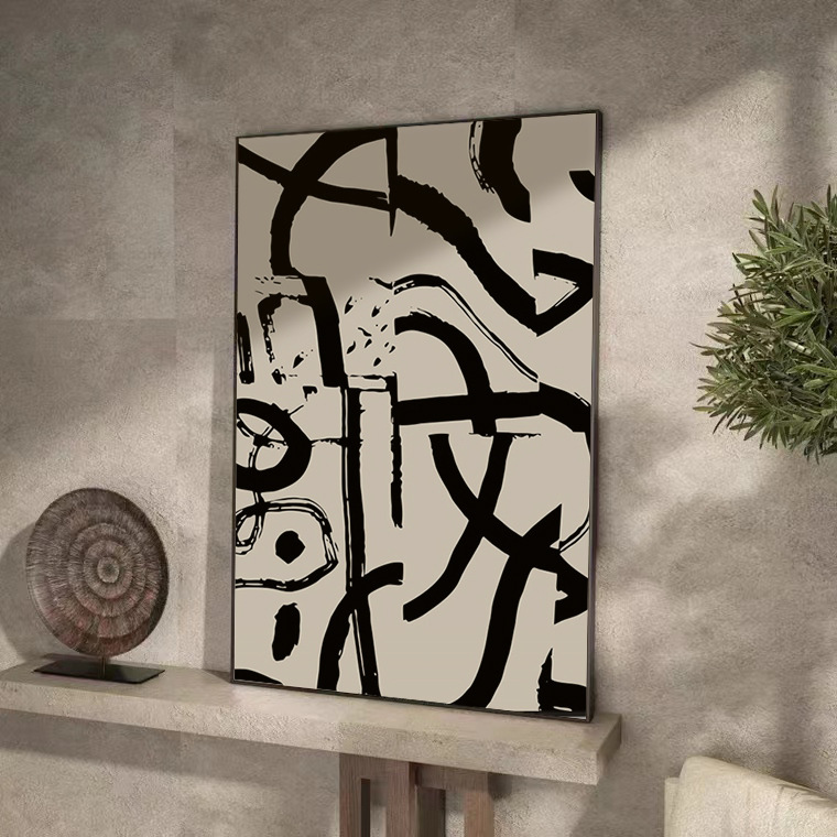 客厅沙发背景墙装饰画侘寂风黑白纹理感壁画极简抽象大幅玄关挂画