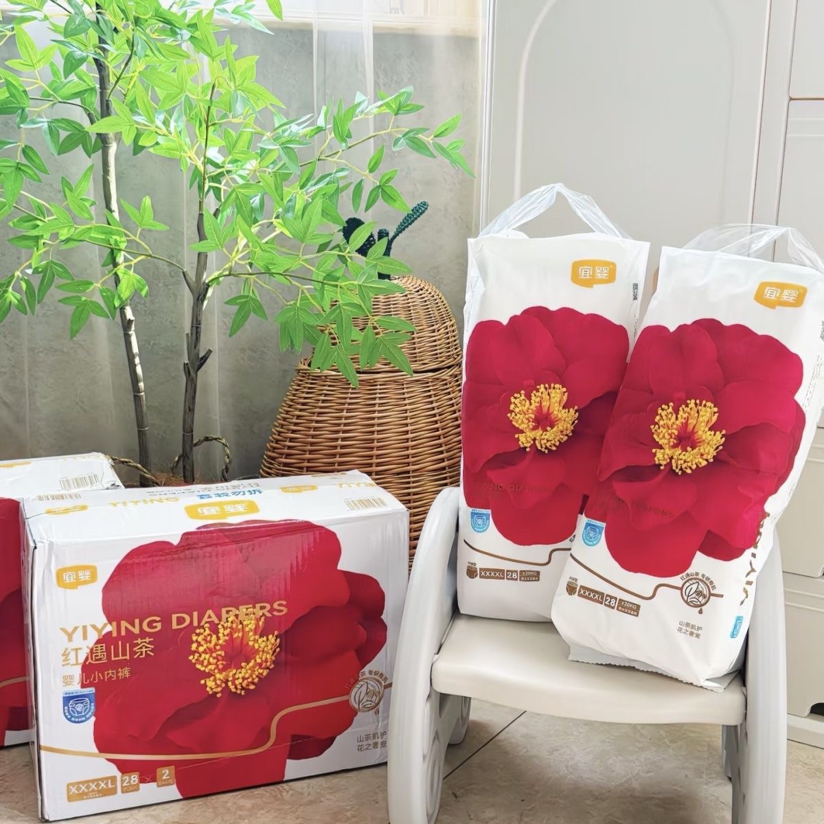 宜婴弱酸山茶花纸尿裤柔软亲肤透气轻薄不过敏拉拉裤干爽不红屁屁