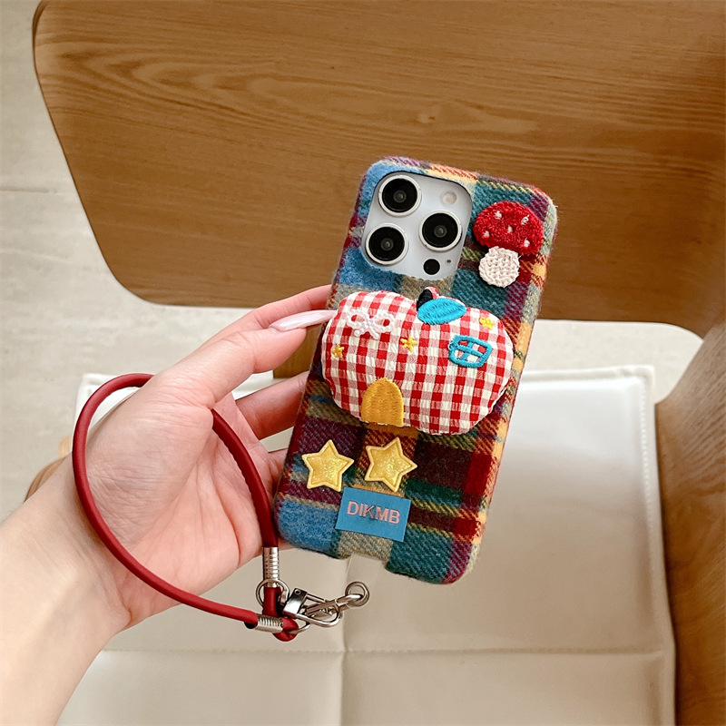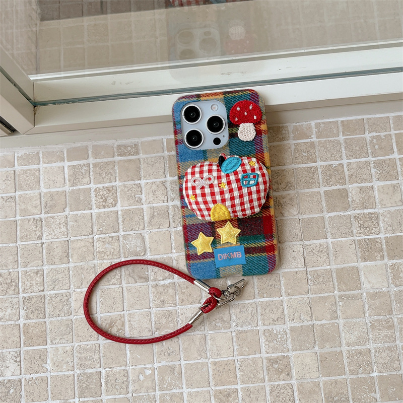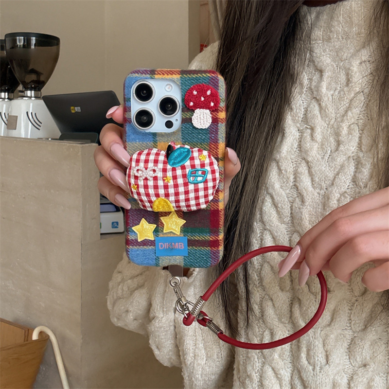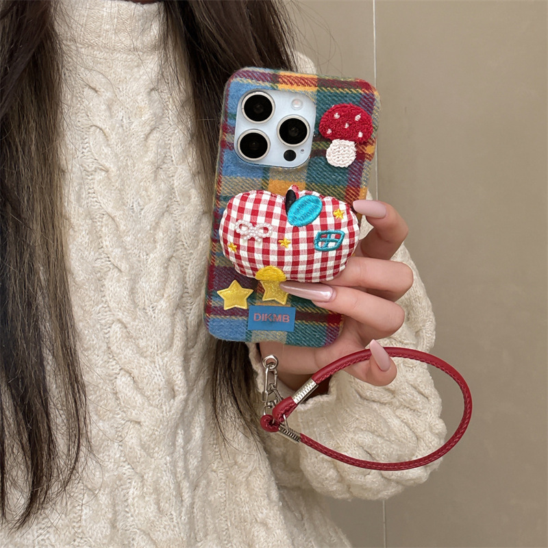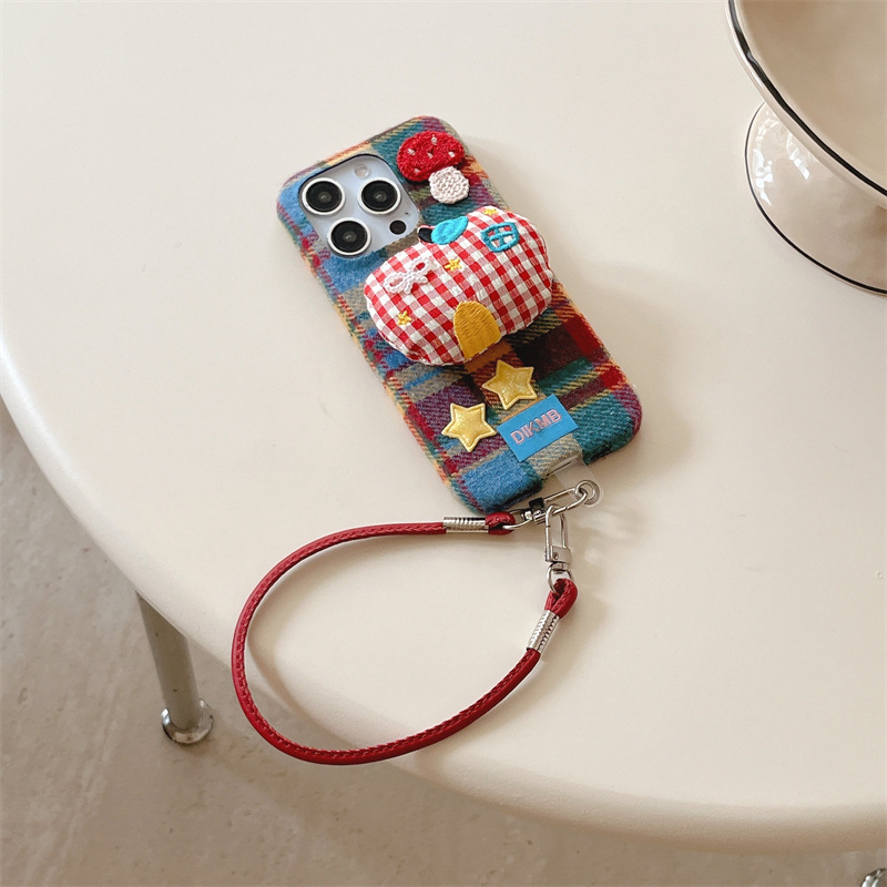 秋冬绒布立体苹果适用iPhone17promax手机壳挂绳16pro防摔15/14女