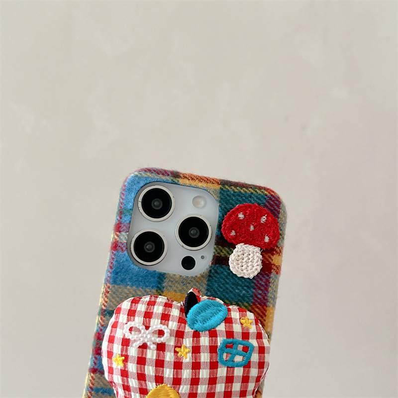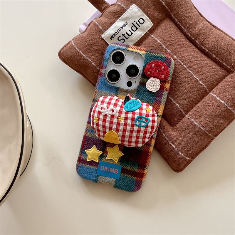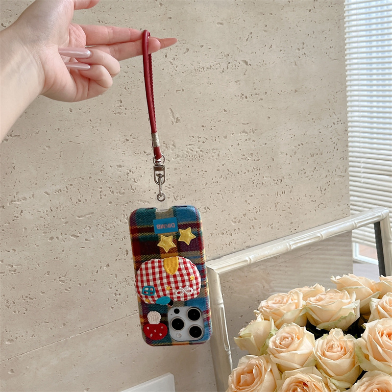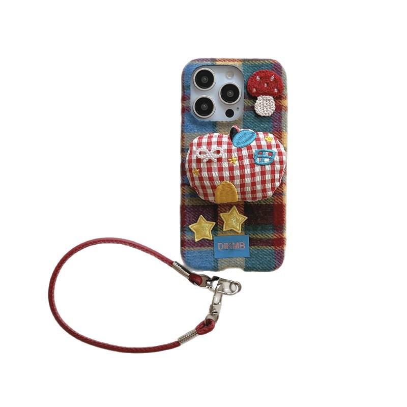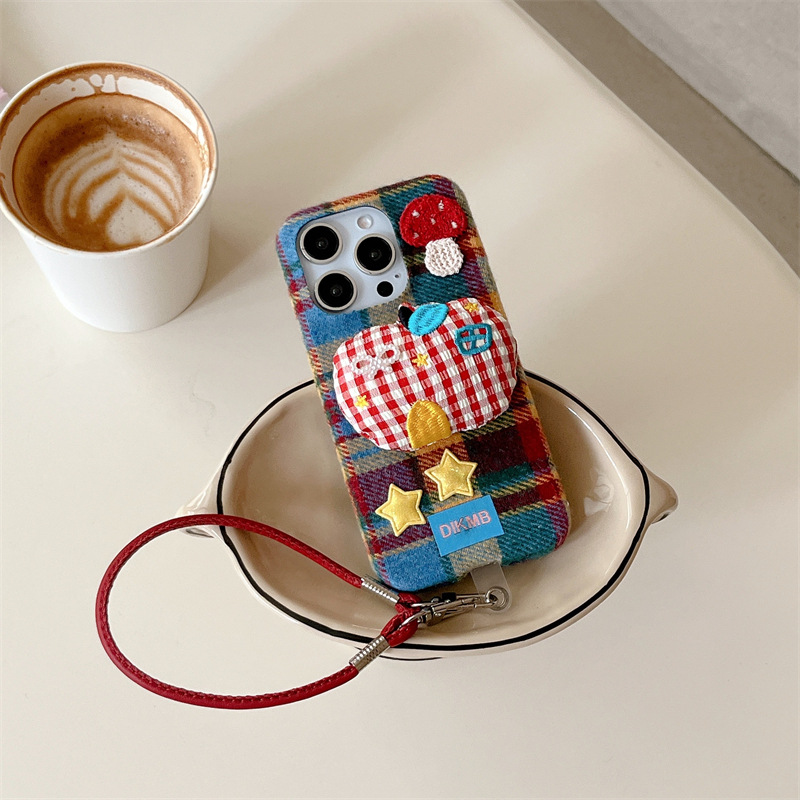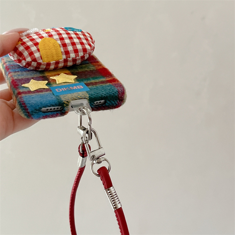 秋冬绒布立体苹果适用iPhone17promax手机壳挂绳16pro防摔15/14女
