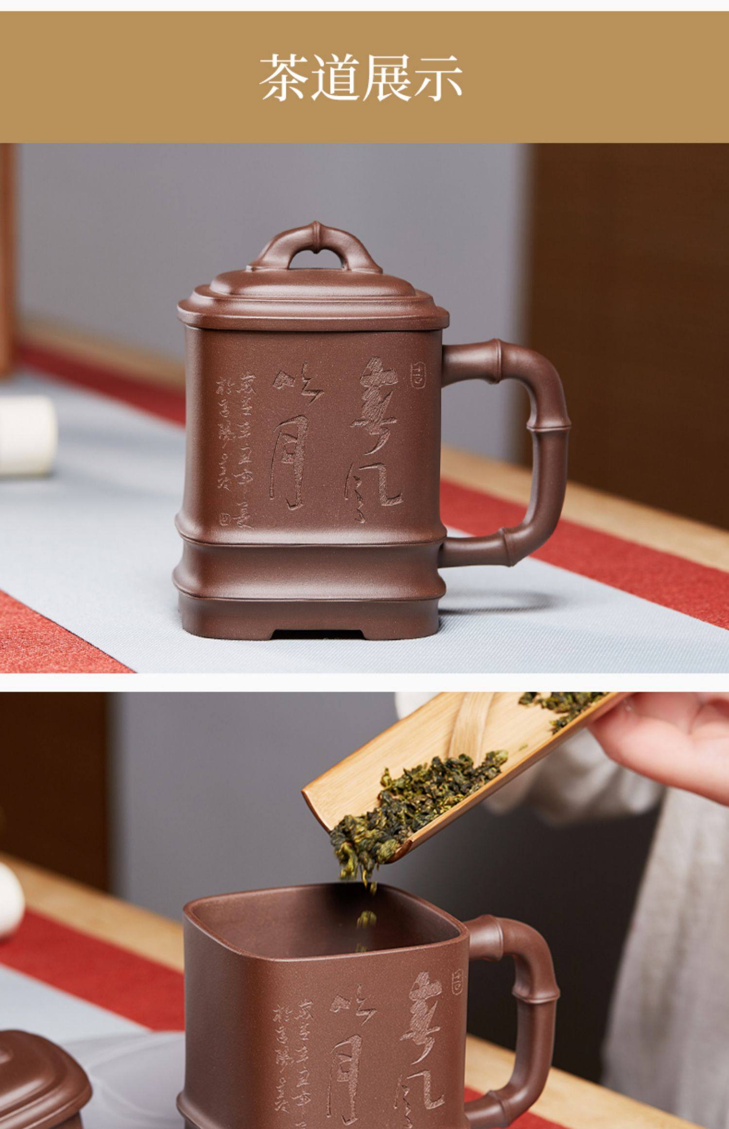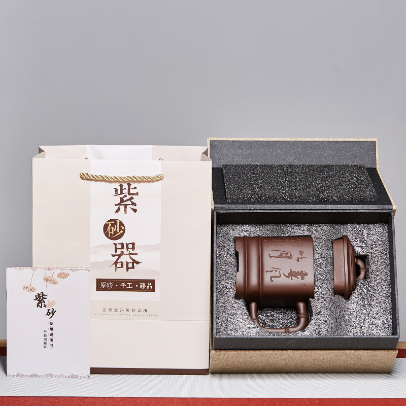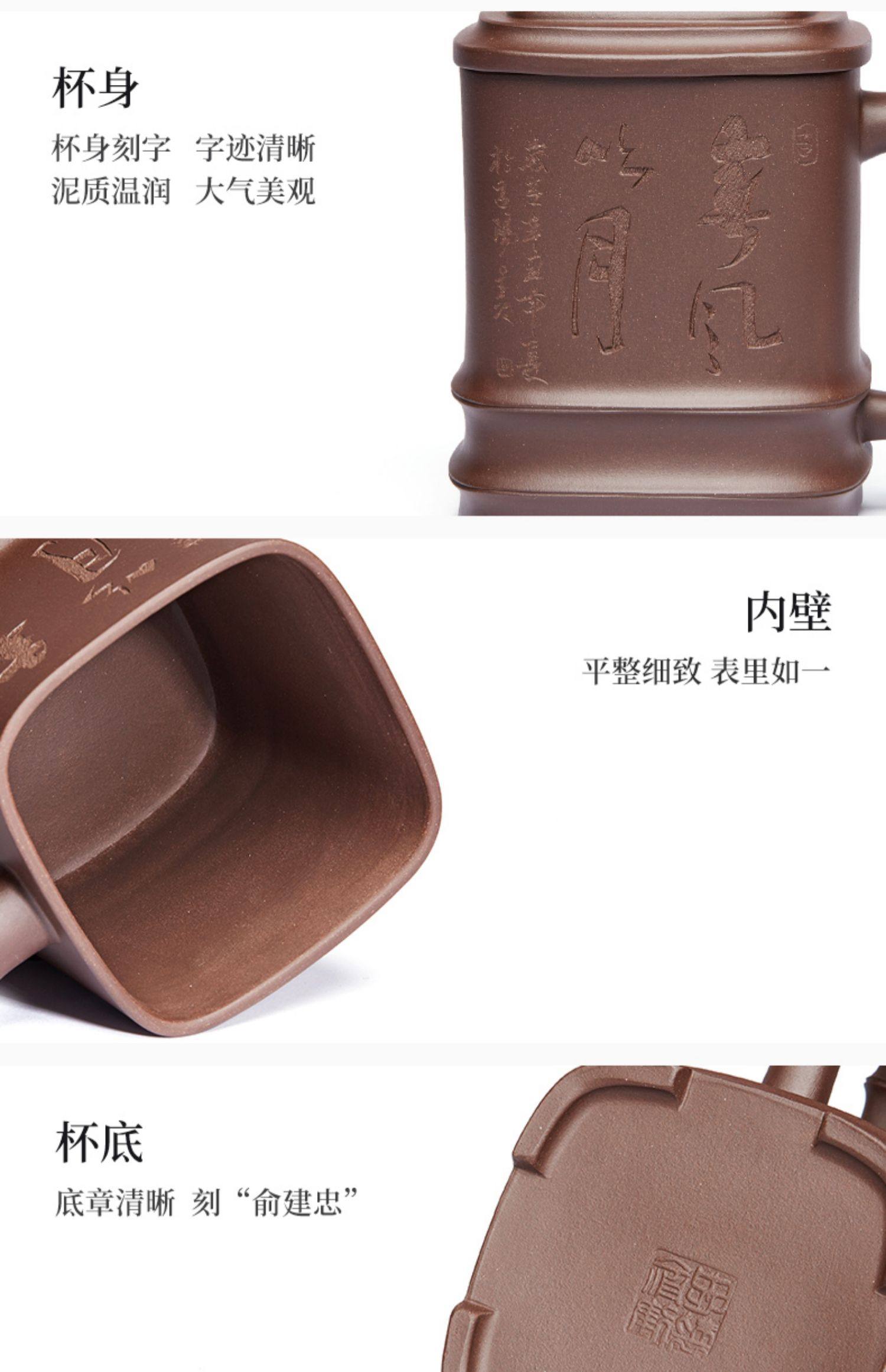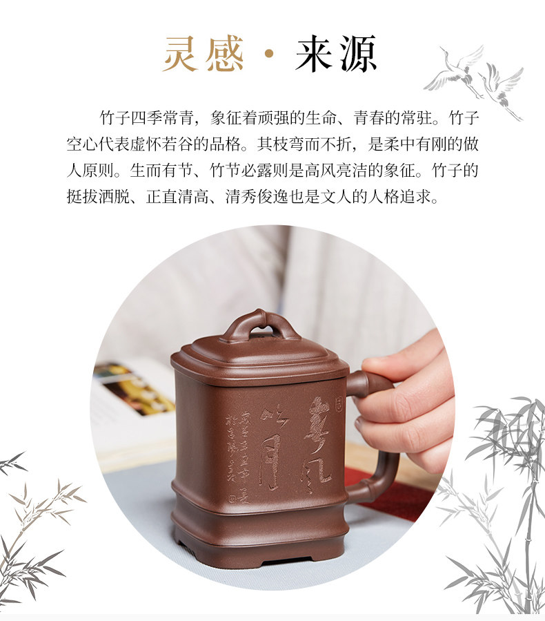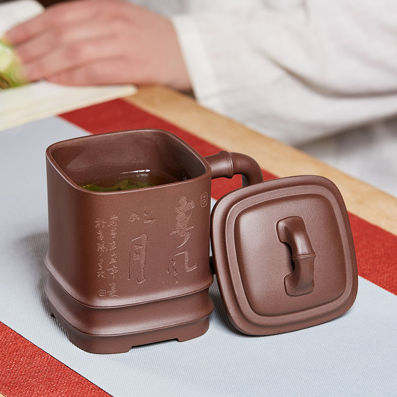紫砂杯四方竹节泡茶杯大容量带盖水杯子陶瓷办公家用茶具