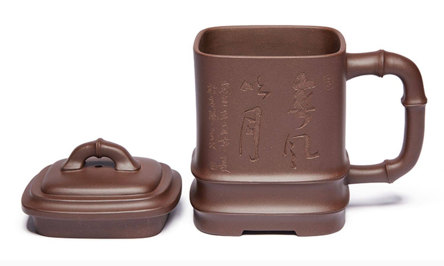 四方竹节盖杯430cc【紫泥】