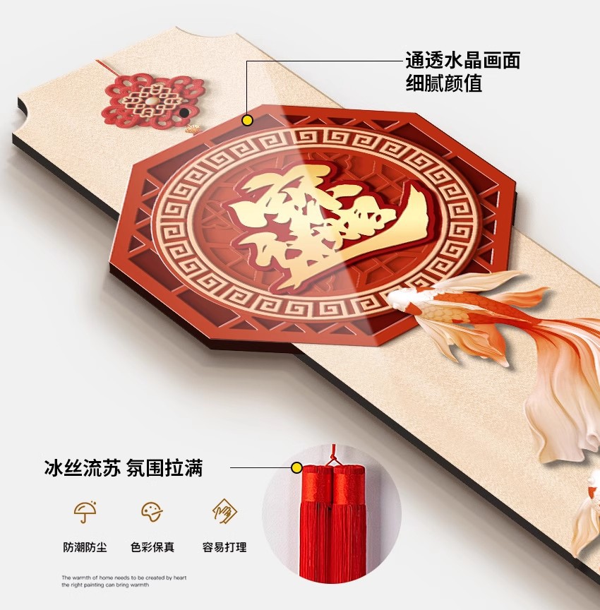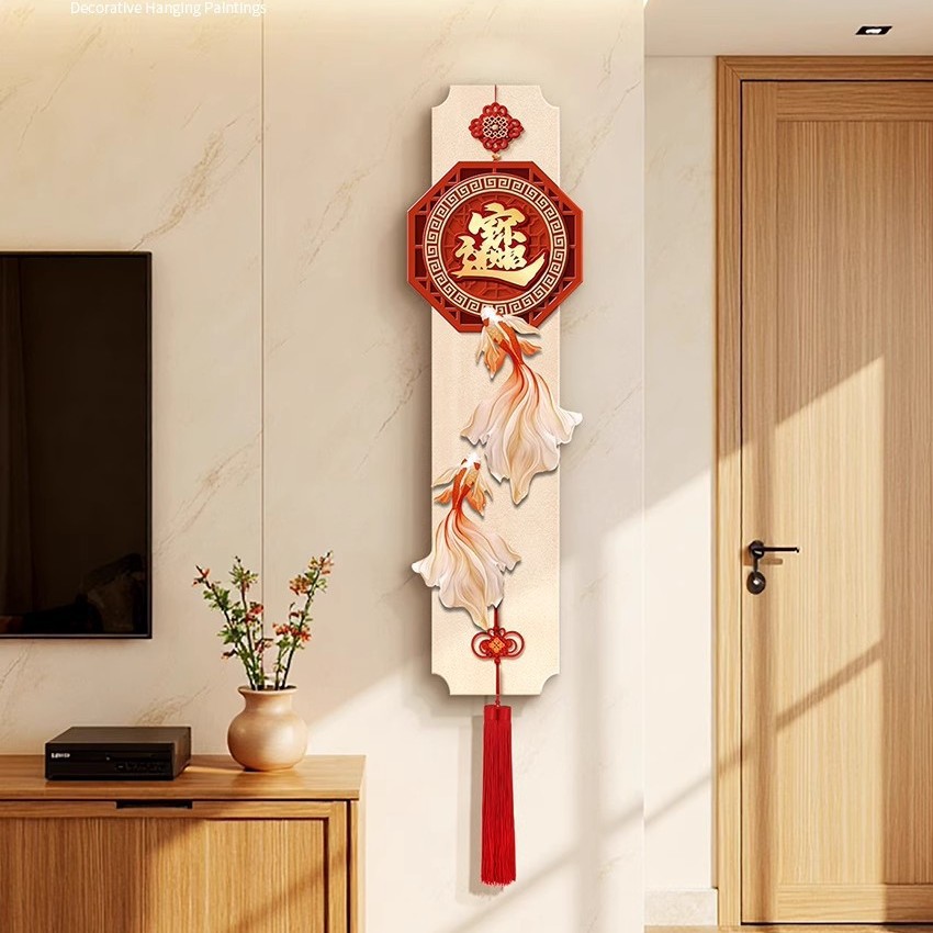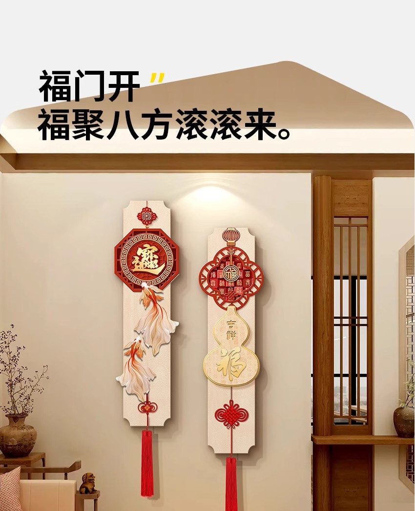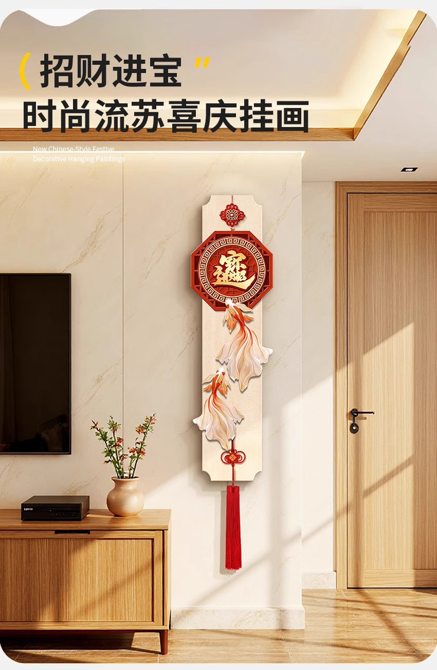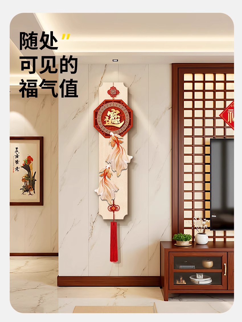 年年有鱼电视背景墙挂画新中式福字玄关装饰画寓意好喜庆创意壁画