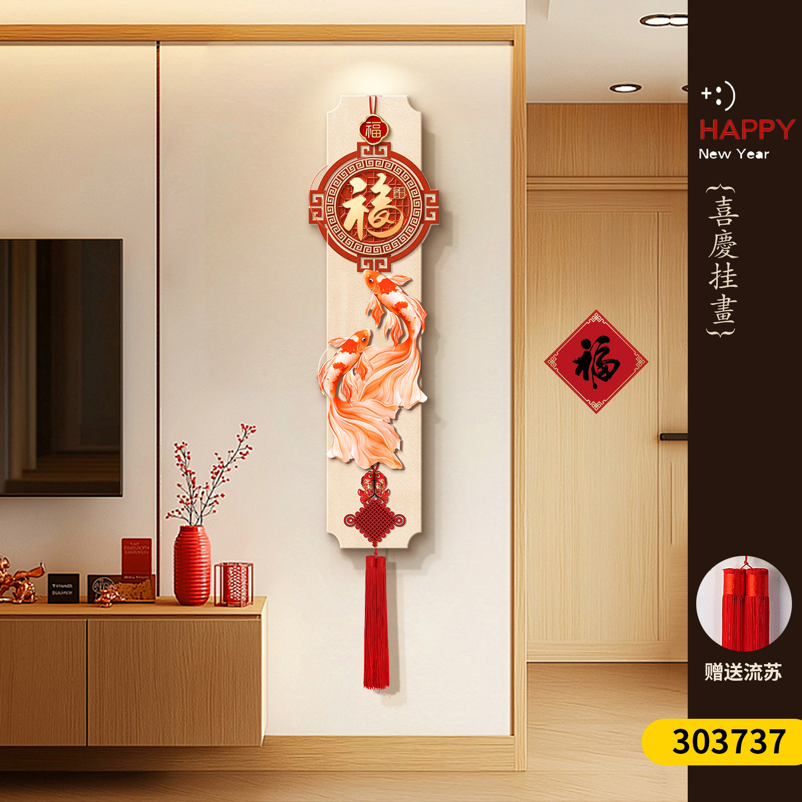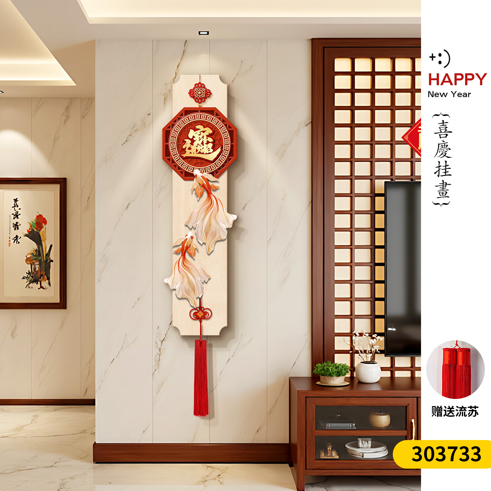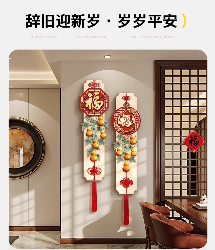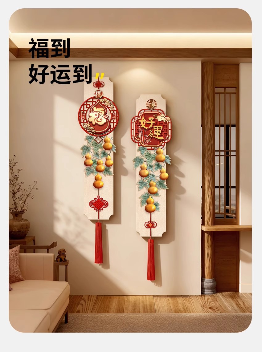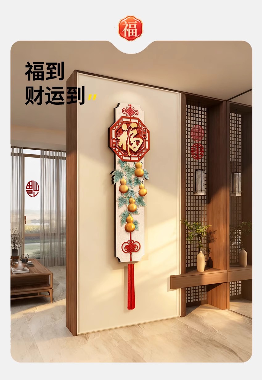 年年有鱼电视背景墙挂画新中式福字玄关装饰画寓意好喜庆创意壁画