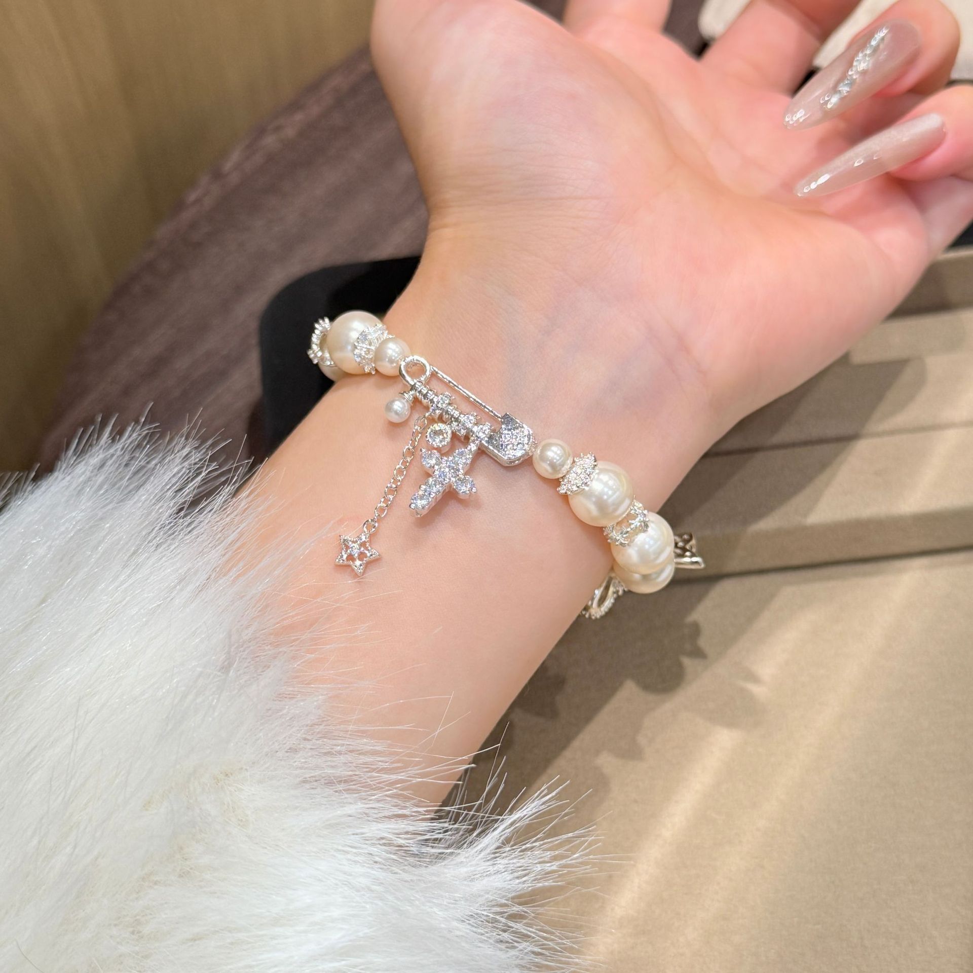 甜酷公主风正圆施家珍珠满钻蝴蝶结回形针重工手链气质高级感手串