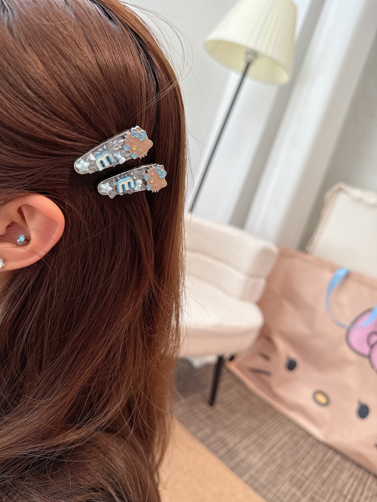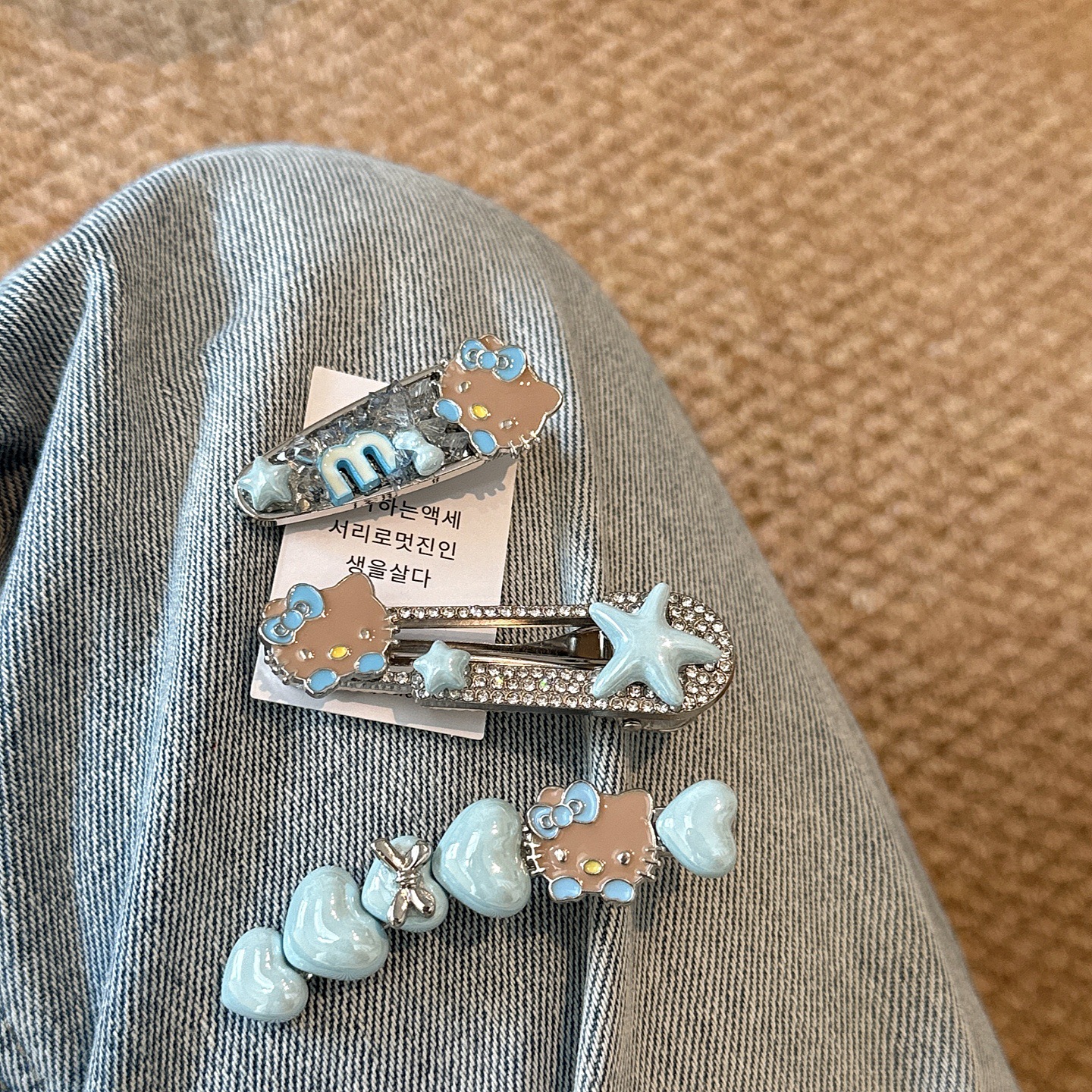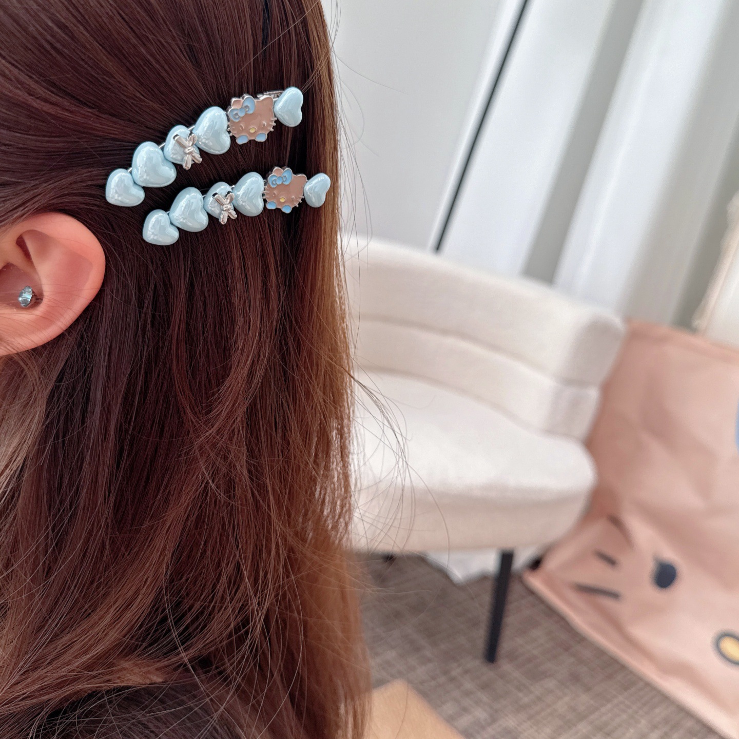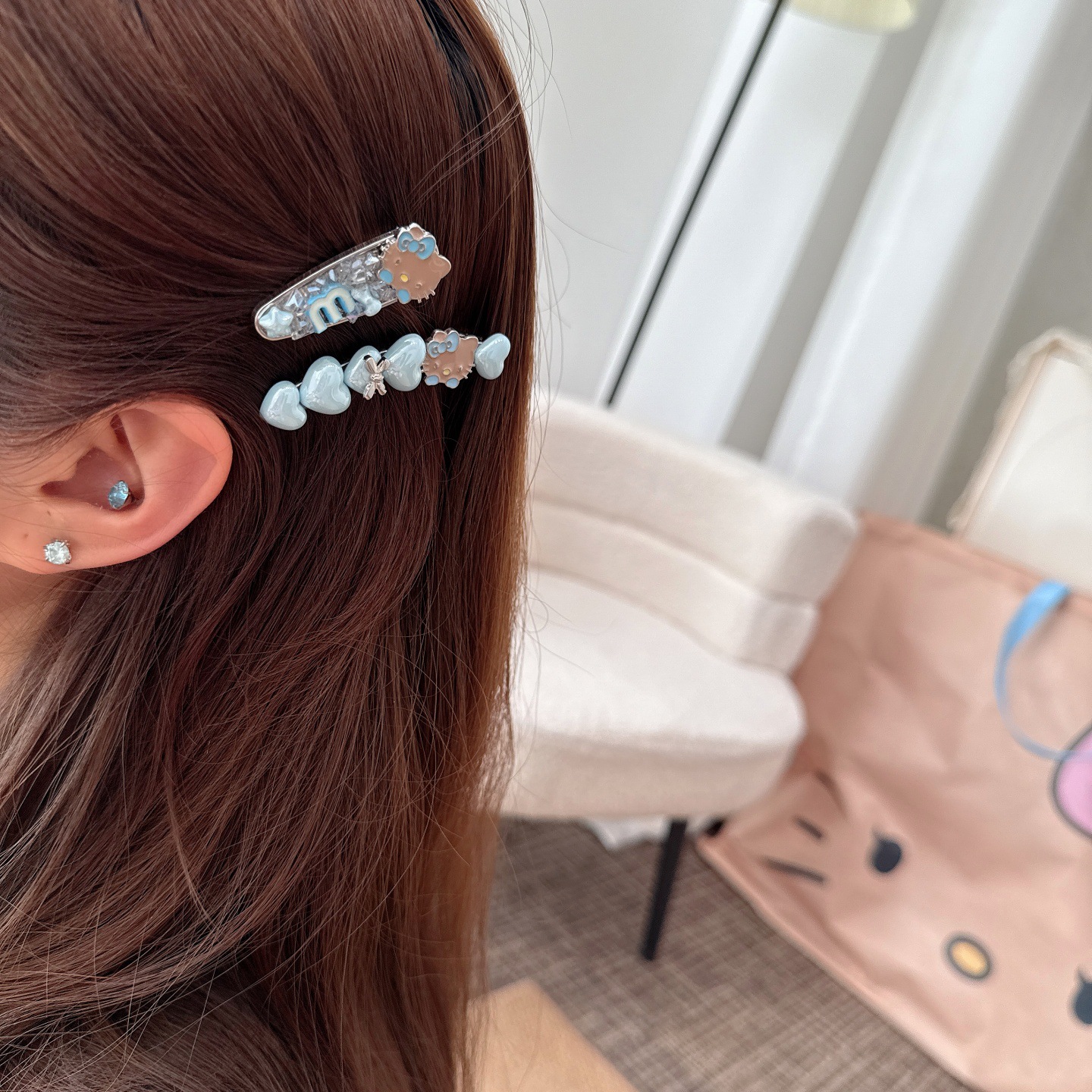 韩系蓝色kt猫咪闪钻发夹少女心爱心侧边夹气质百搭刘海夹鸭嘴夹