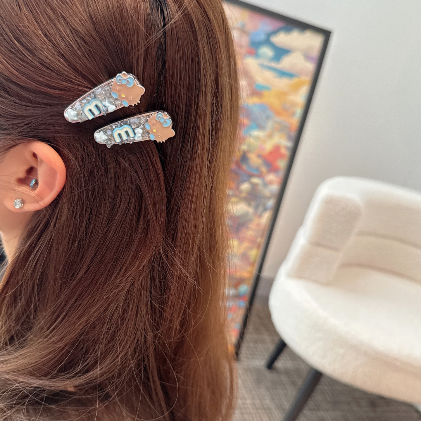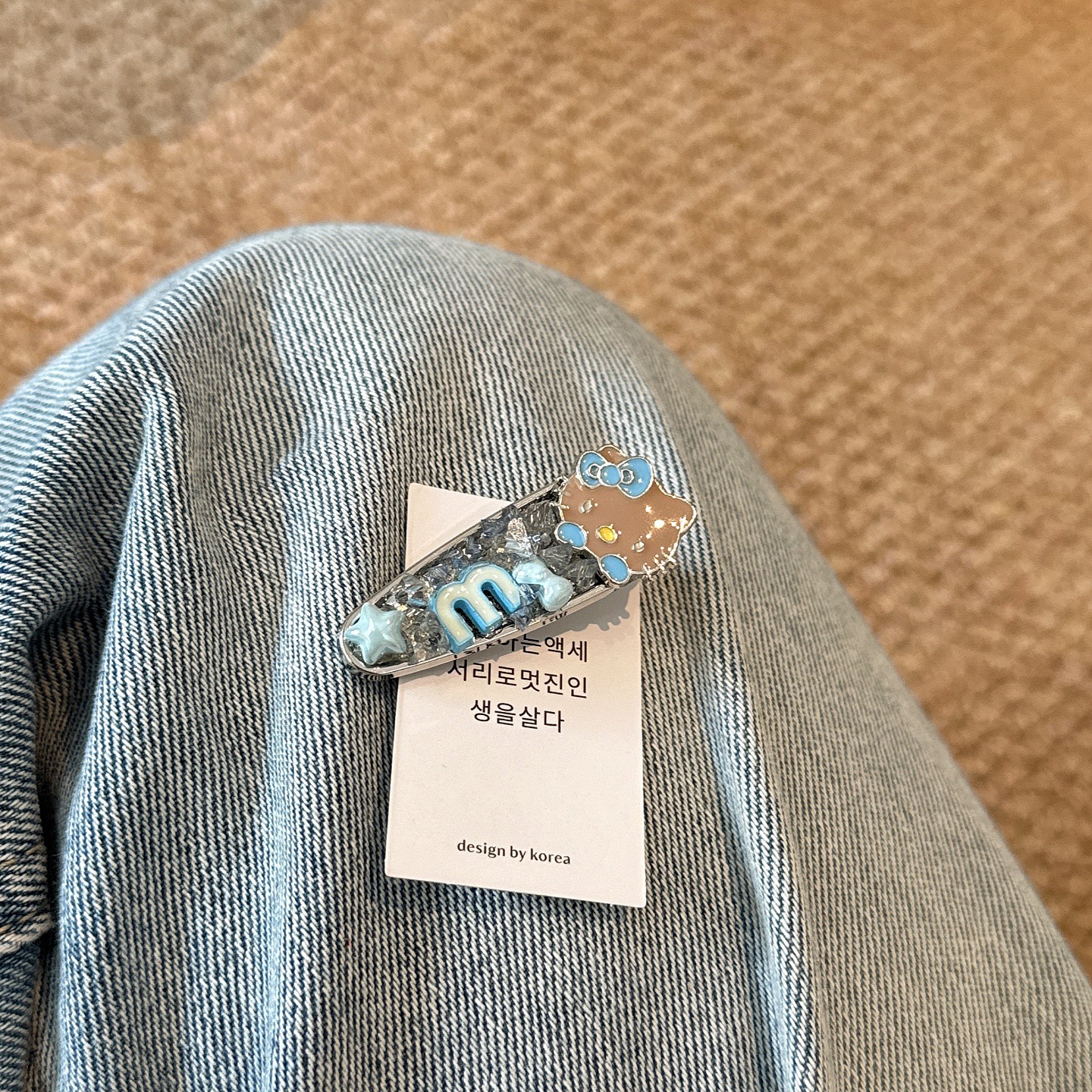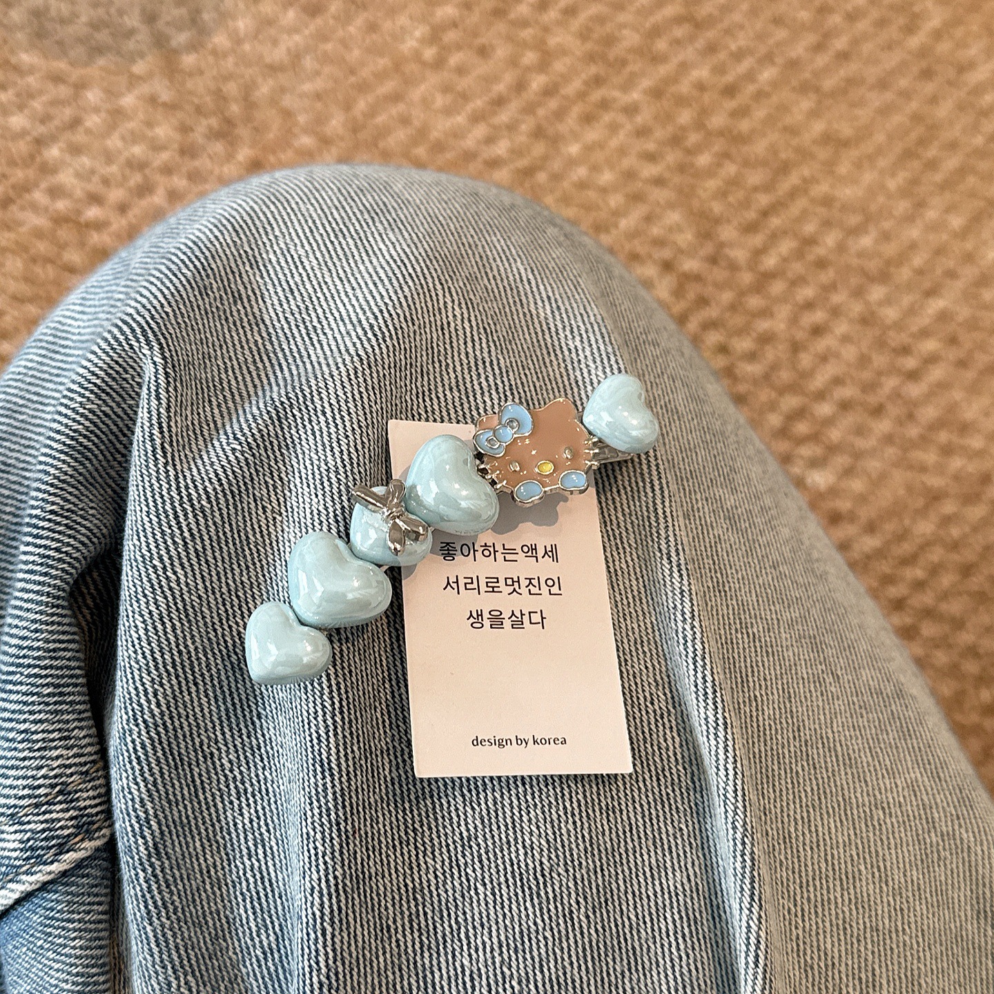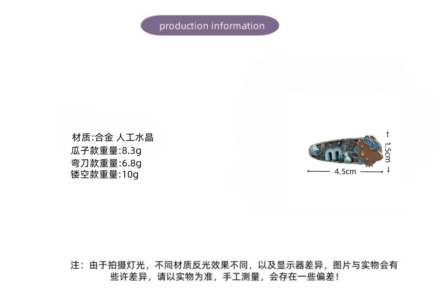 韩系蓝色kt猫咪闪钻发夹少女心爱心侧边夹气质百搭刘海夹鸭嘴夹