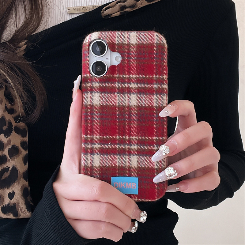 苏格兰格绒布适用iPhone华为mate60pro/70手机壳防摔Pura70/80女P60毛绒