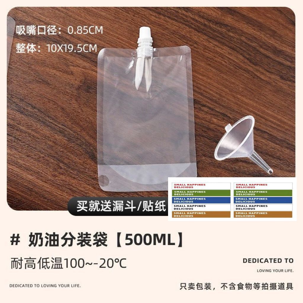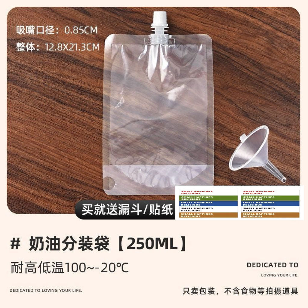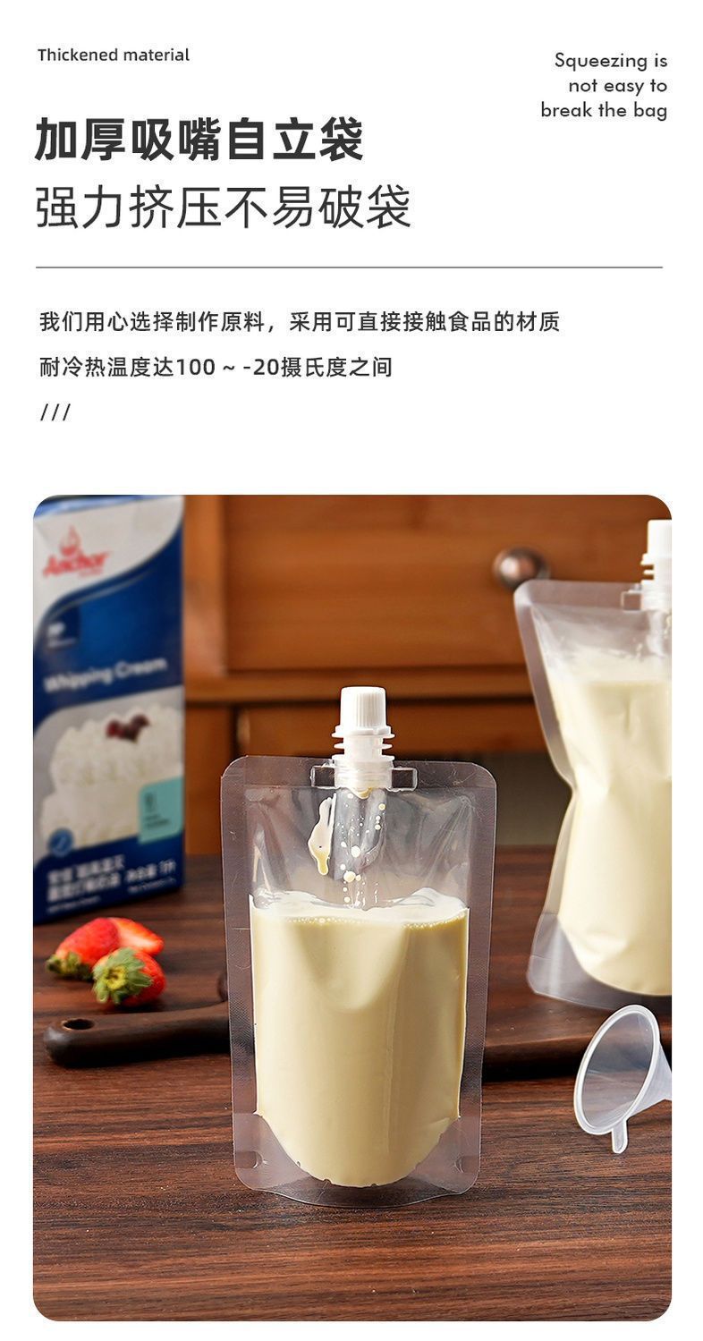 淡奶油分装袋液体豆浆自封袋子250ml500一次性储存冷藏密封吸嘴袋