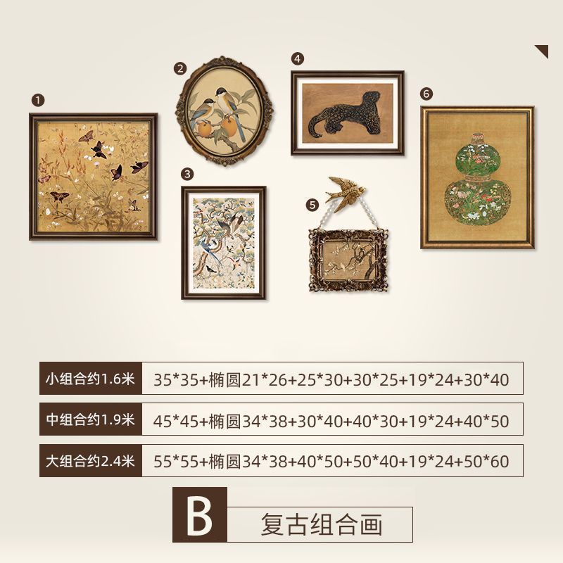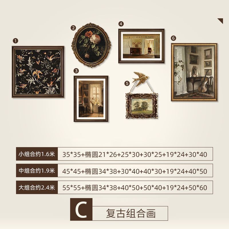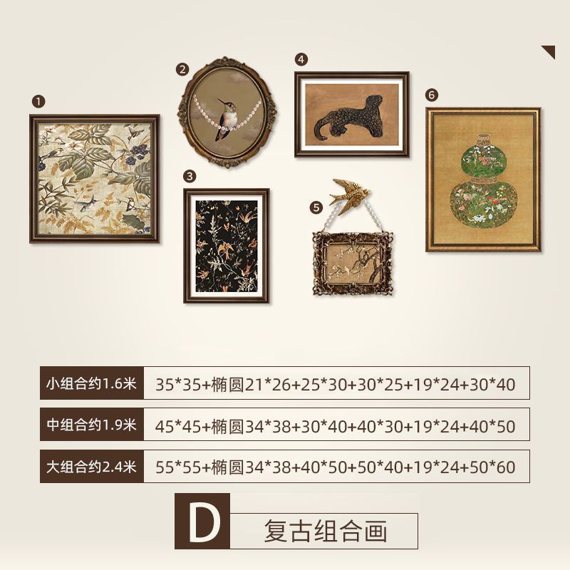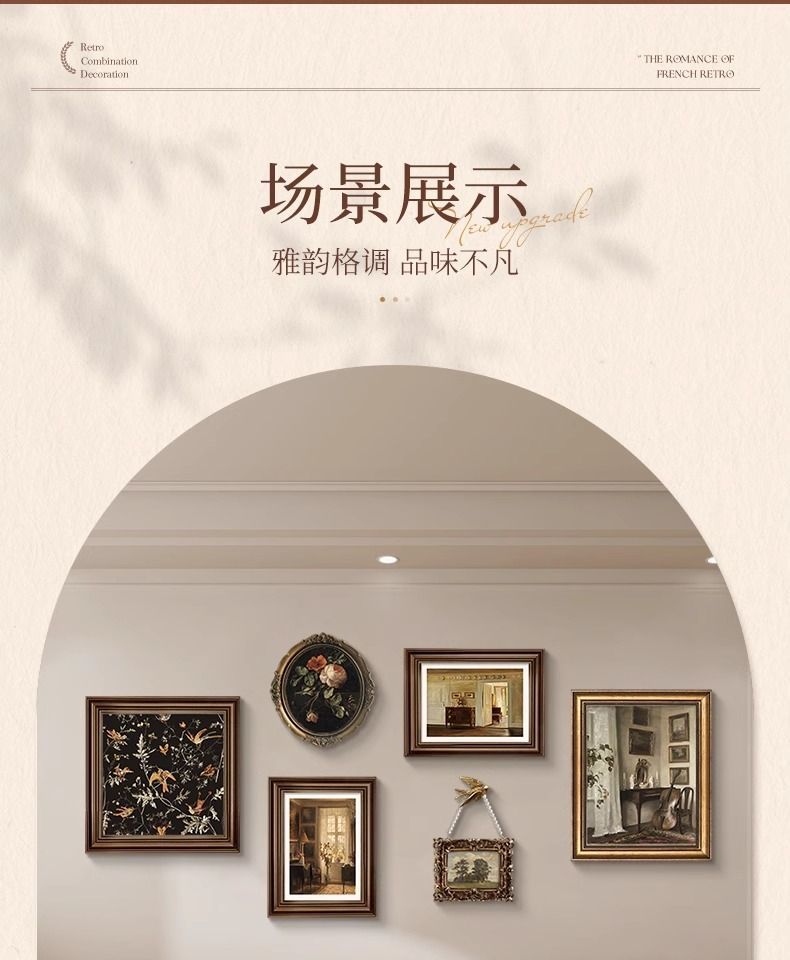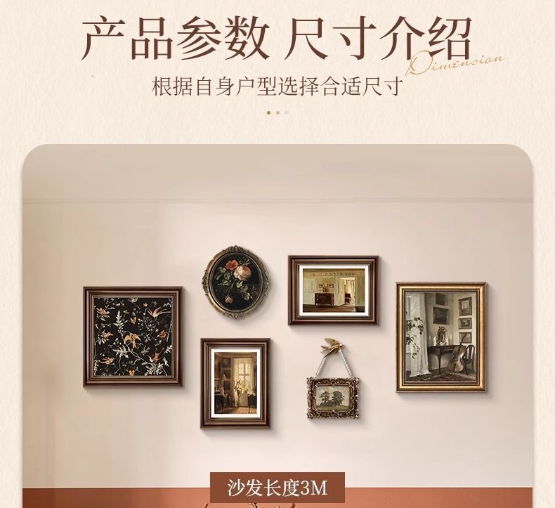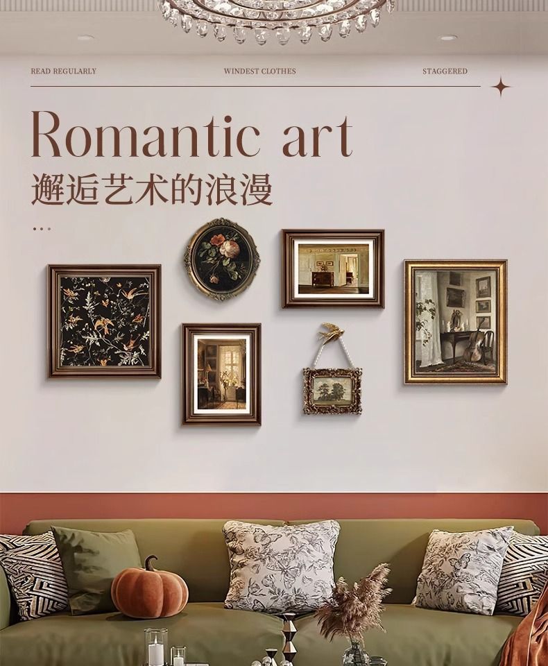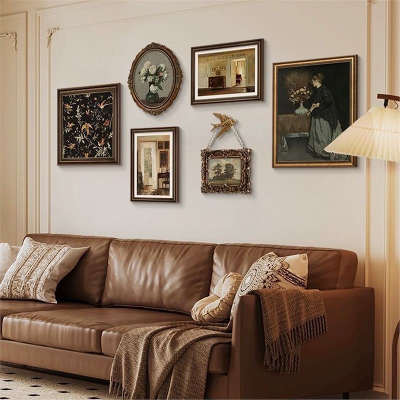 法式复古挂画美式装饰画客厅沙发背景墙画复古风组合壁画纯手绘