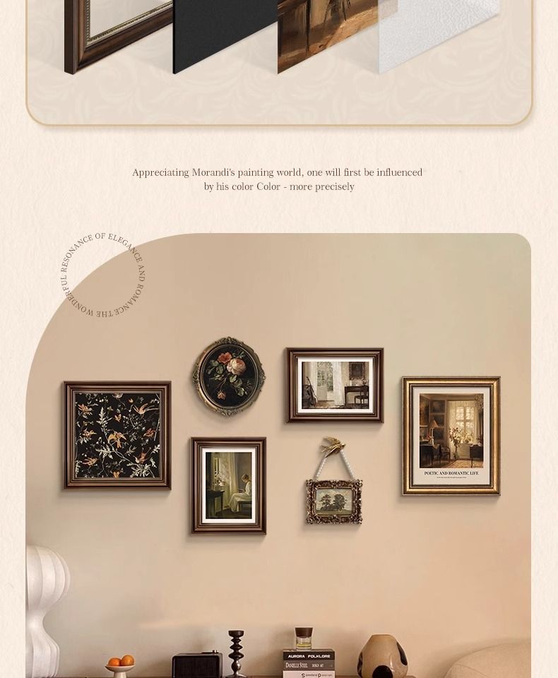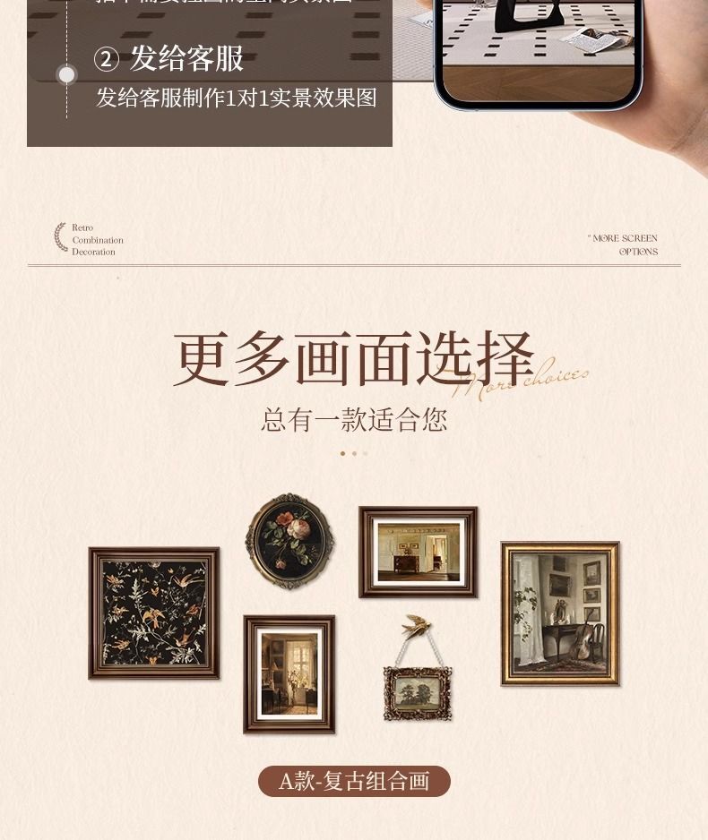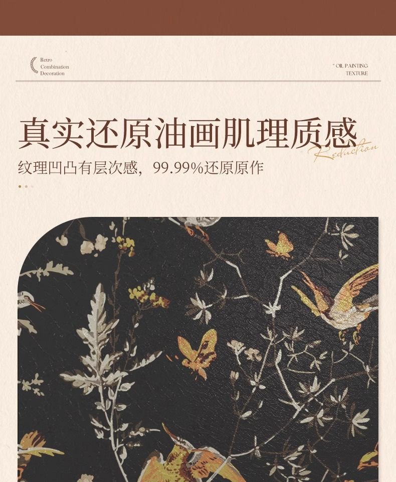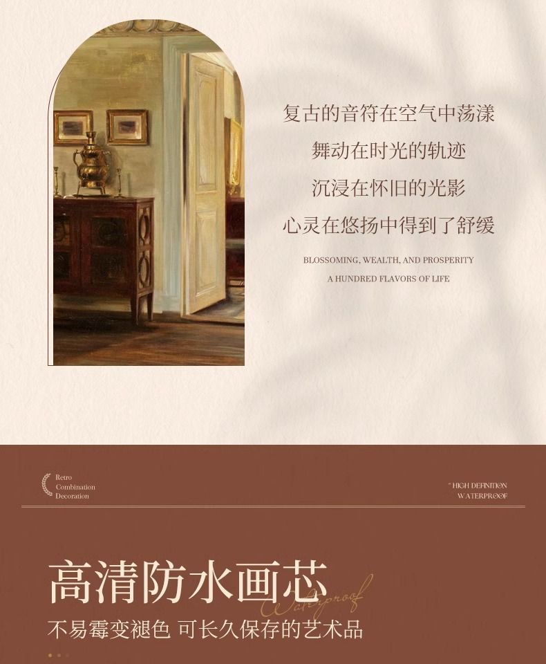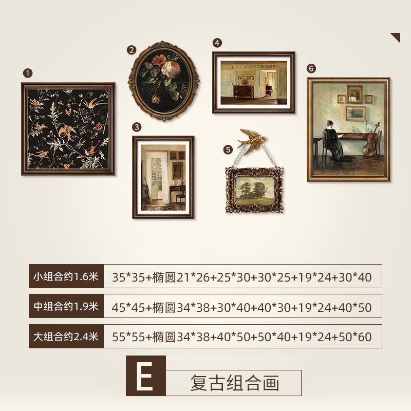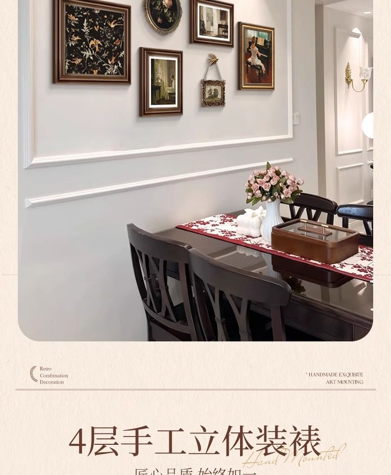 法式复古挂画美式装饰画客厅沙发背景墙画复古风组合壁画纯手绘