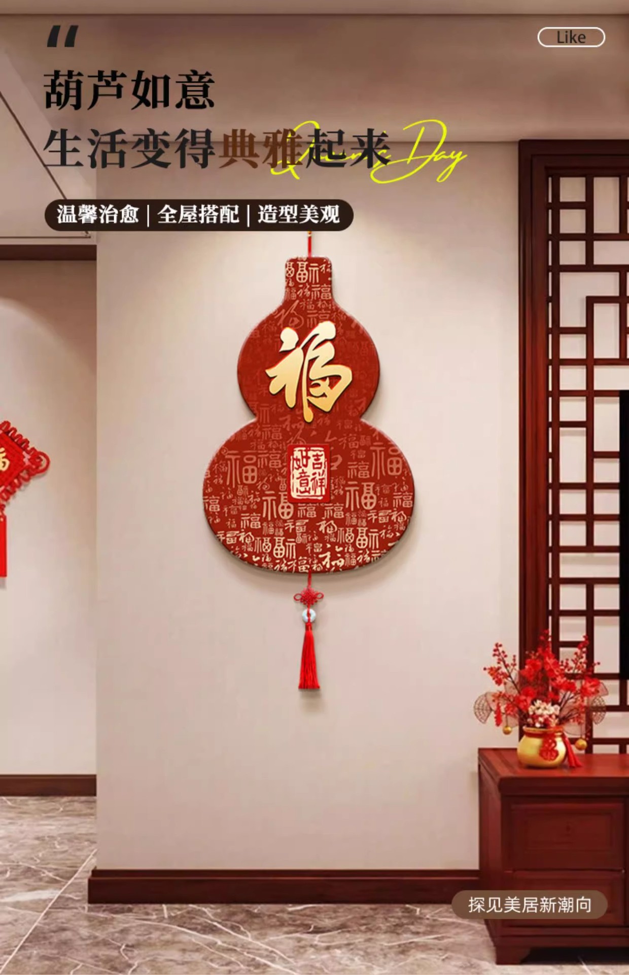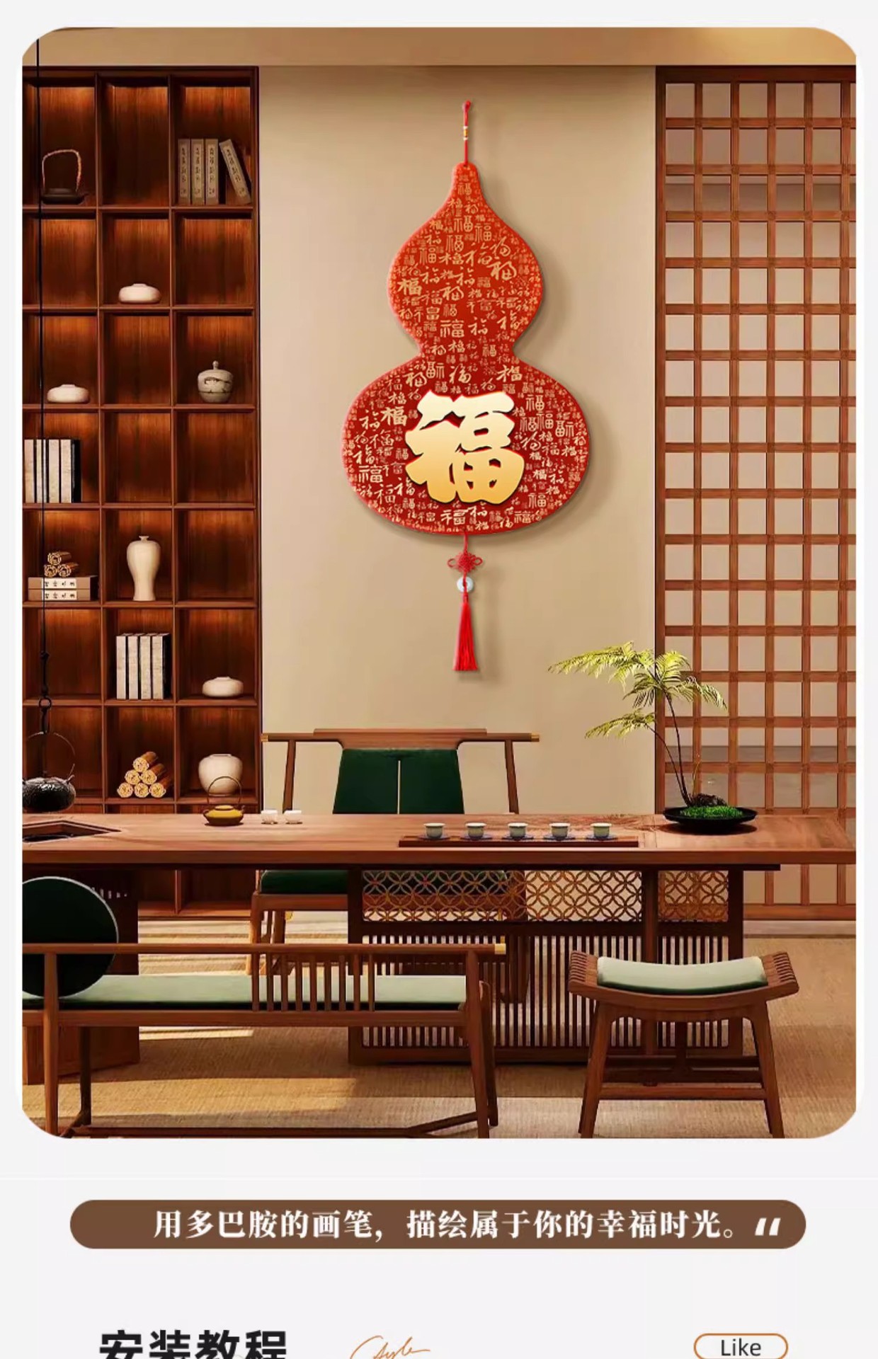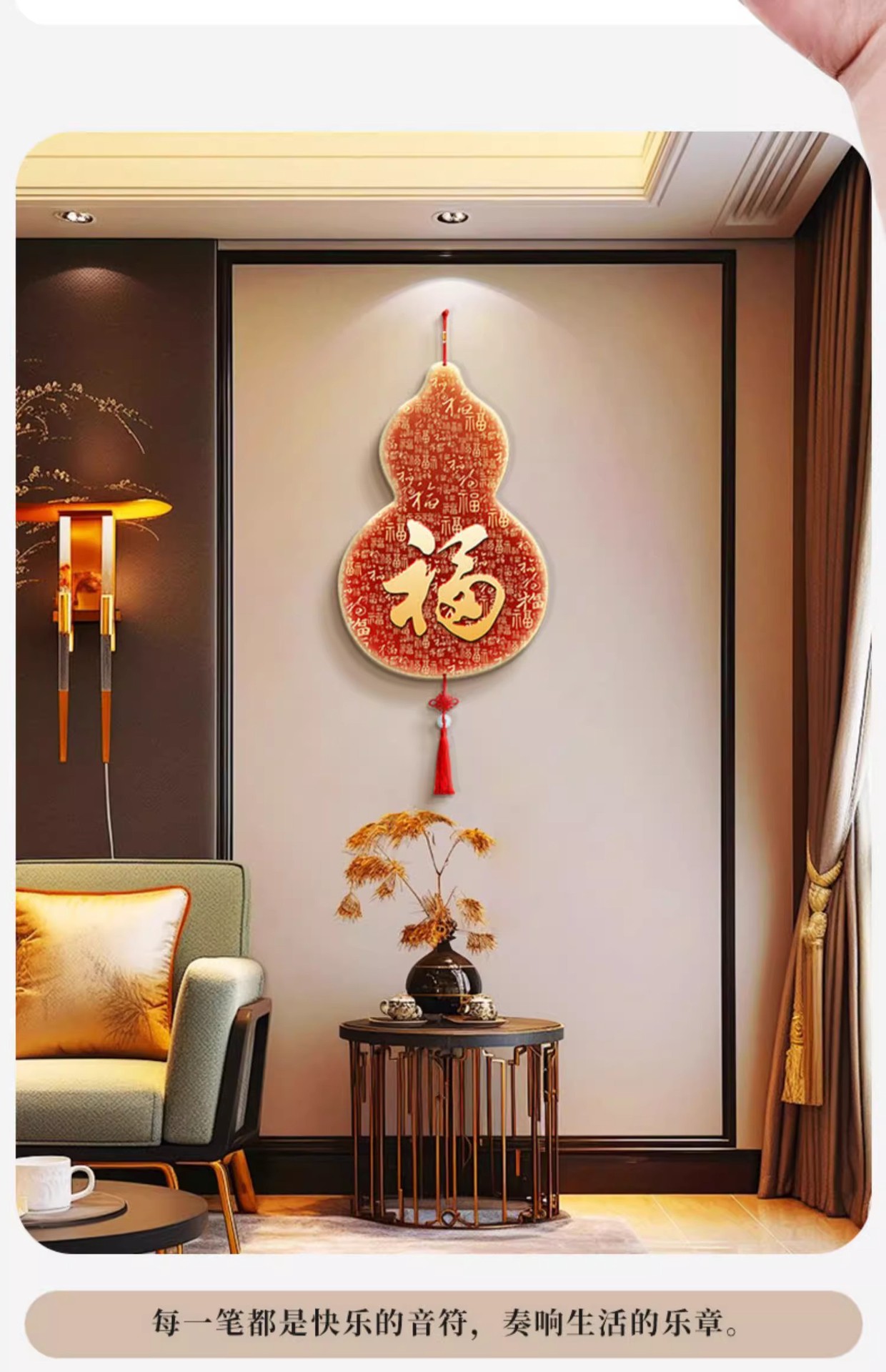 福字挂件百福图高级感玄关装饰画中国结客厅背景墙新中式走廊壁画