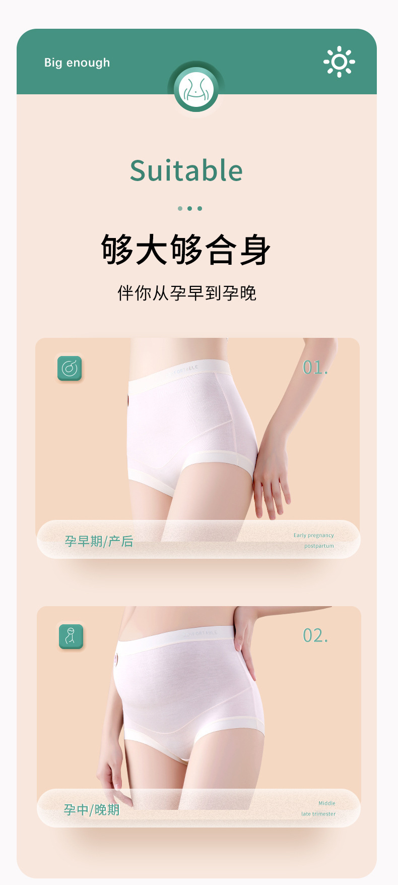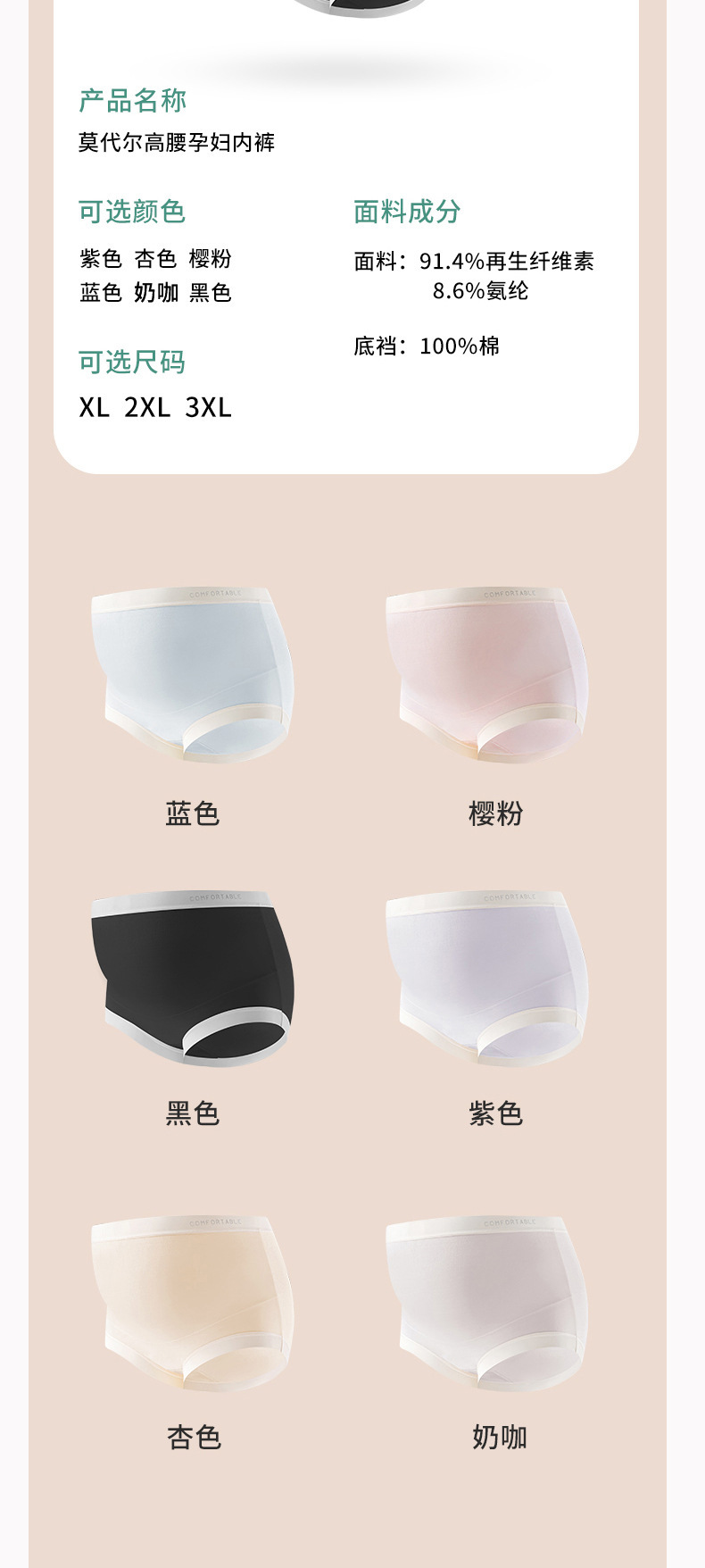 60支莫代尔纯棉裆宝妈内裤女高腰托腹不勒肚怀孕期产后女孕产妇