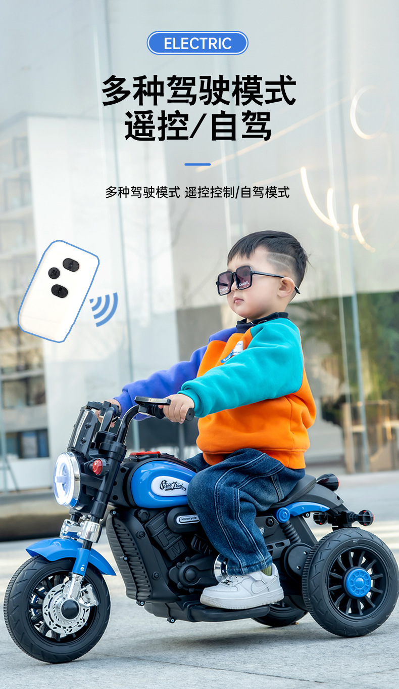 儿童电动摩托车男孩充电遥控电动车三轮车宝宝童车小孩大号电瓶车