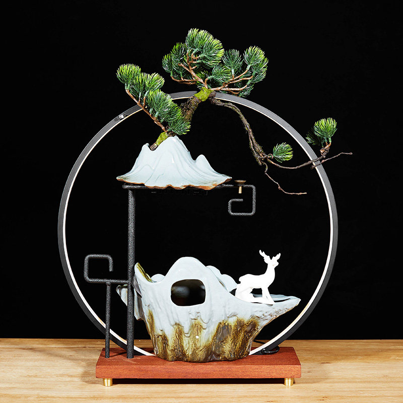 迎客松假树仿真松树美人松盆景雾化加湿器罗汉松客厅家用景观摆件