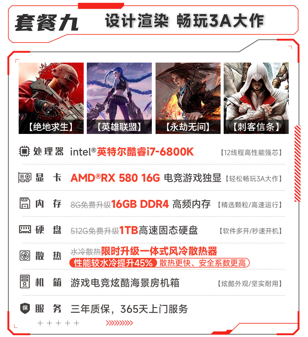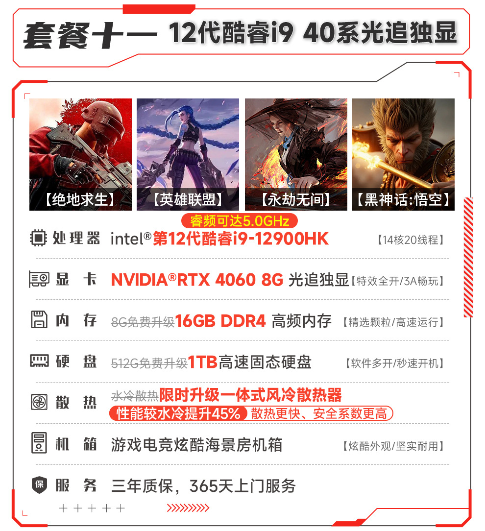 - 九:酷睿i7丨16G+1TB丨16G独显畅玩3A