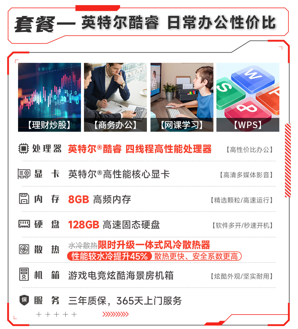 - 一:酷睿i3丨8G丨128G丨性能办公集显