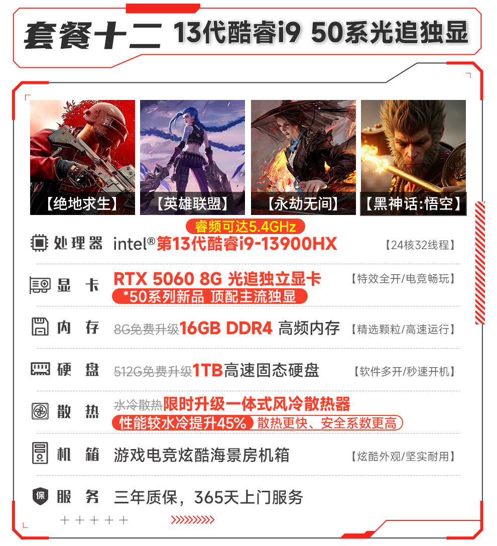 - 十二:13代酷睿i9丨16G丨5060全能霸主