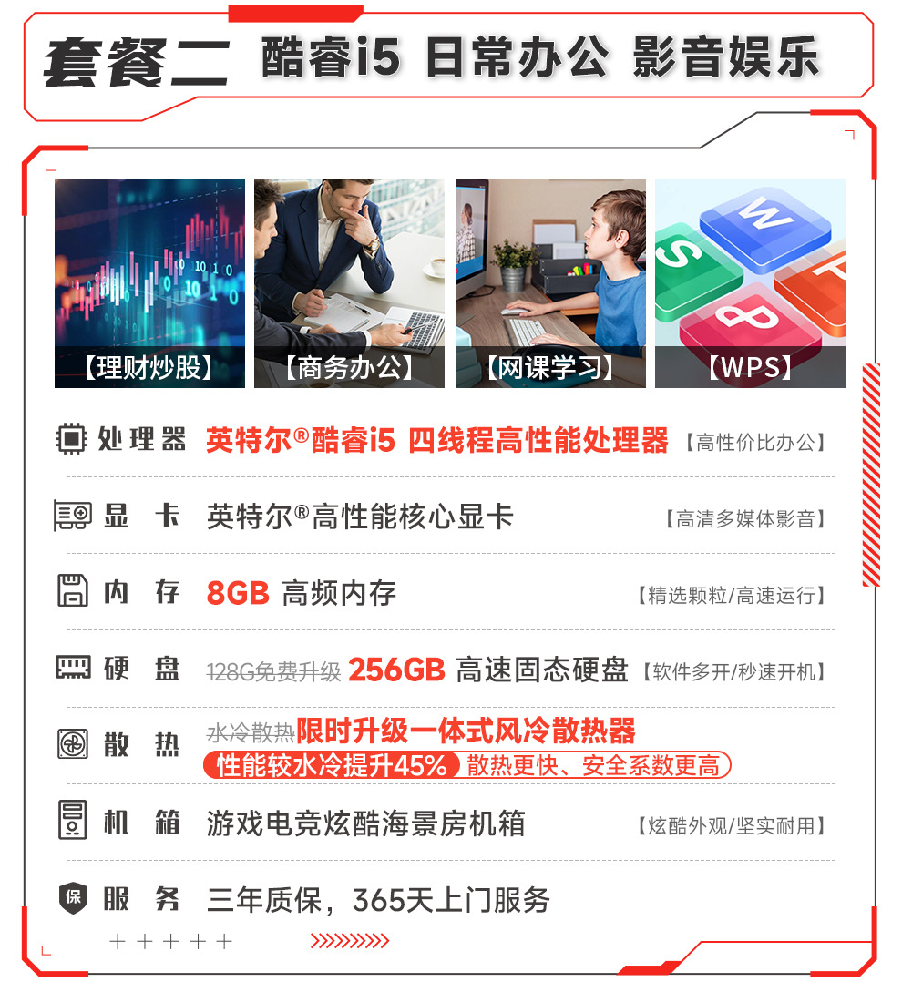- 二:酷睿i5丨8G丨256G丨性能办公集显