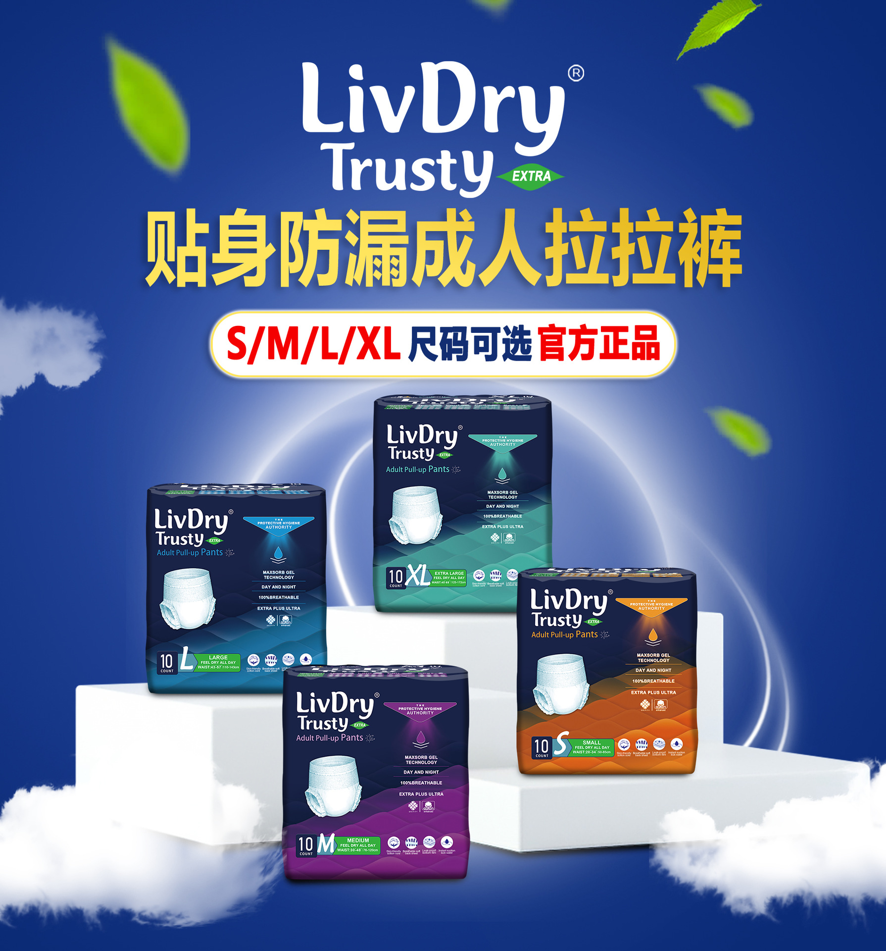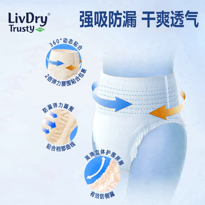 LivDry纸尿裤成年人拉拉裤L老人用尿不湿S男女老人经期裤内裤式XL