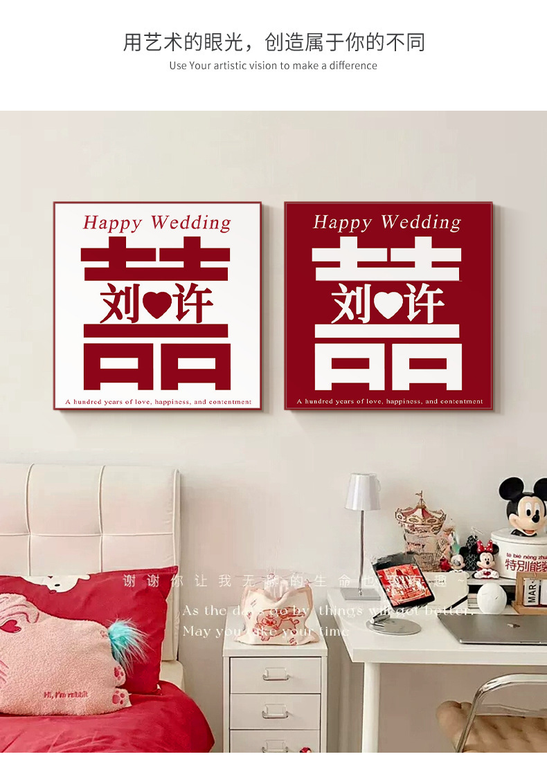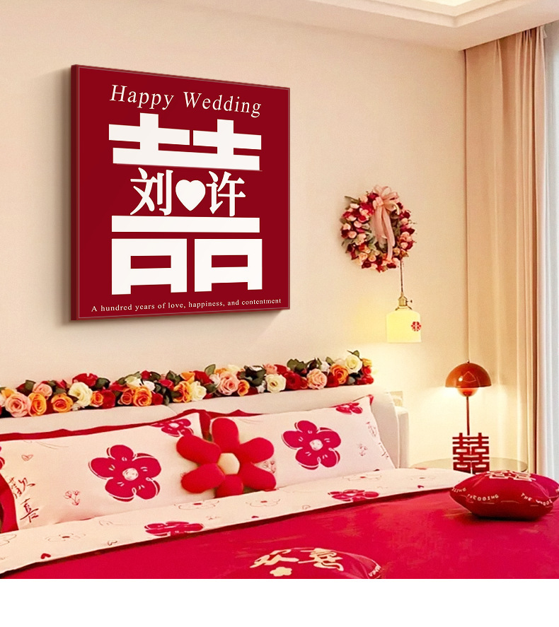 结婚囍字喜庆客厅装饰画送新人礼物备婚房布置新婚装饰床头挂画