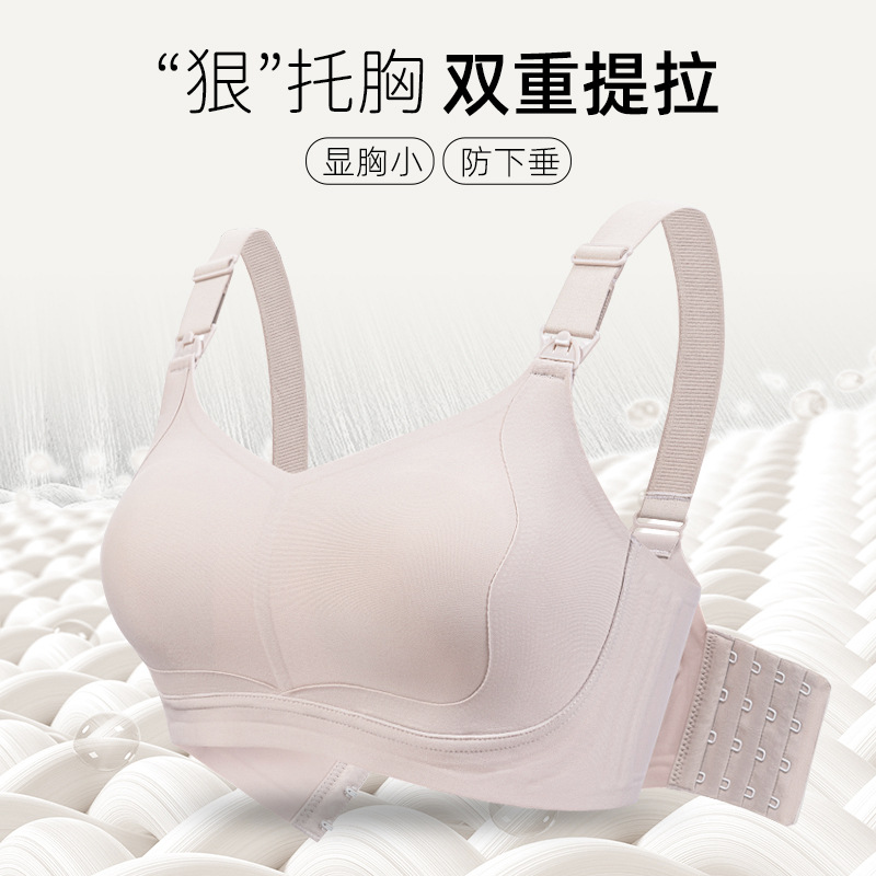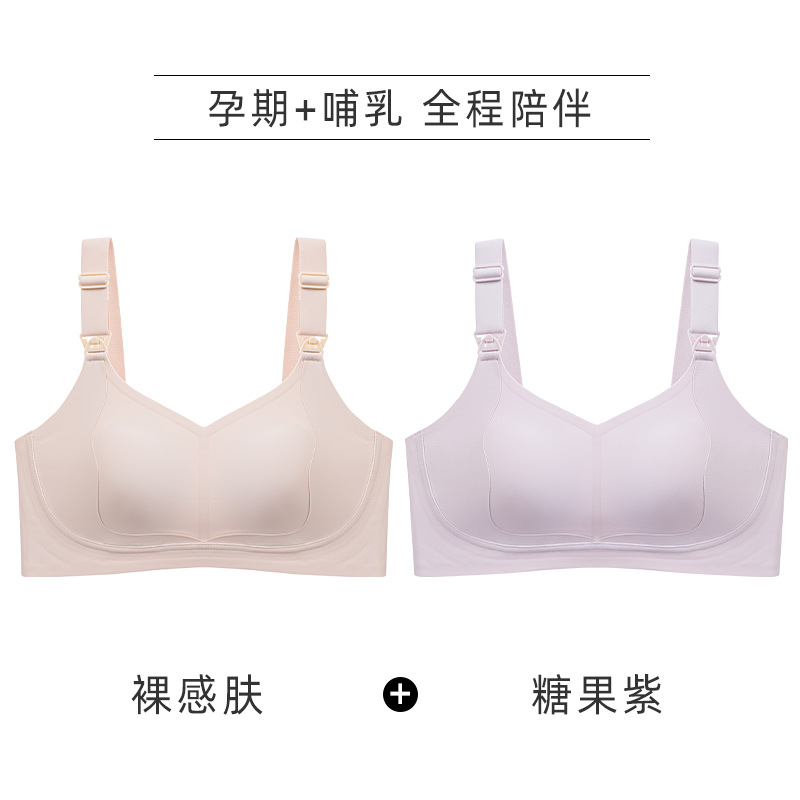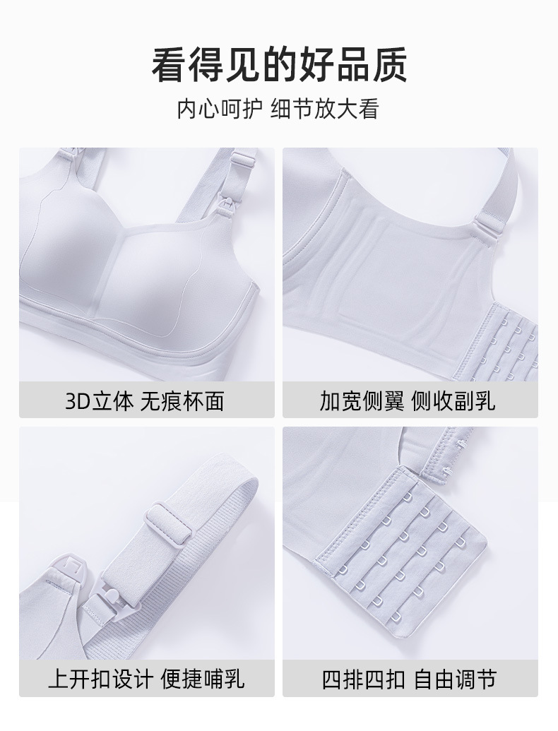大胸显小果冻聚拢哺乳文胸无钢圈上开扣孕期哺乳期孕妇内衣女薄款