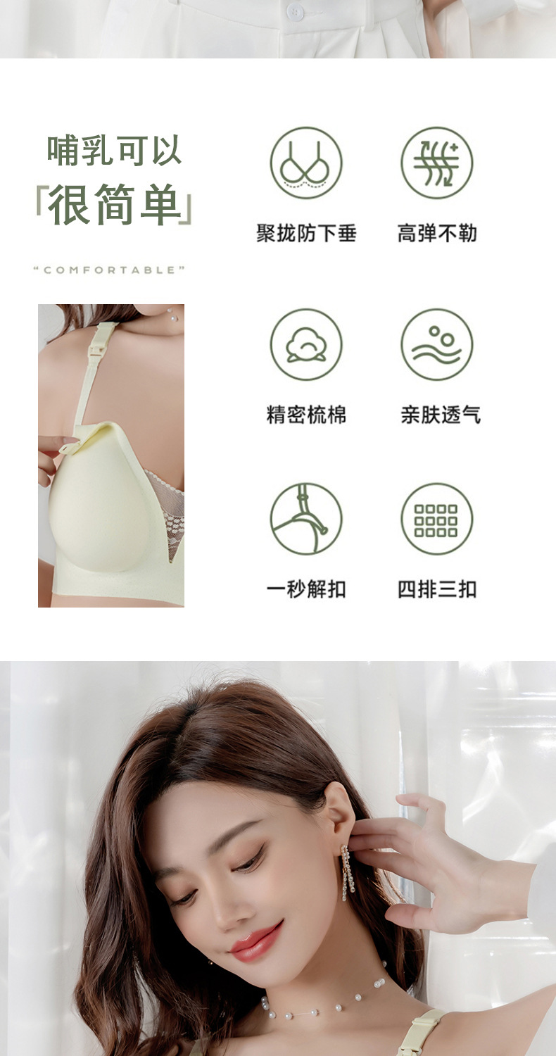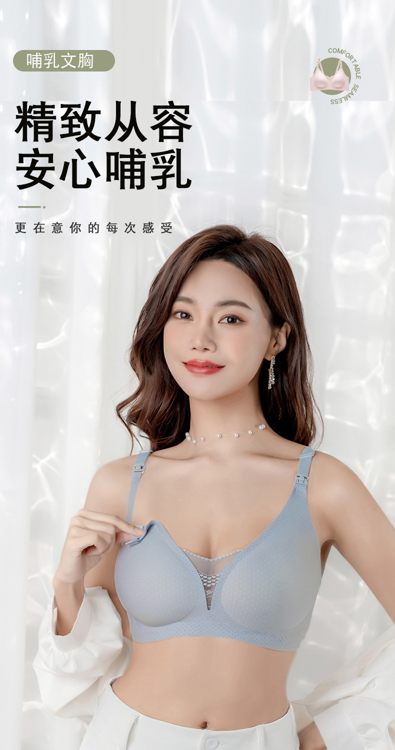 哺期孕妇前拉链上开扣哺乳文胸背心薄款式聚拢无钢圈孕内衣女