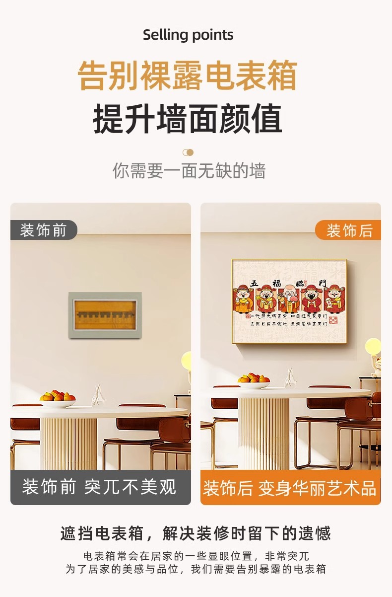 五福临门电表箱装饰画2025新款配电箱挂画遮挡电源电闸开关盒壁画