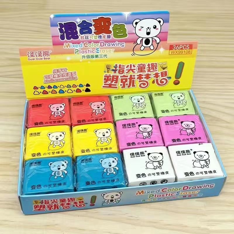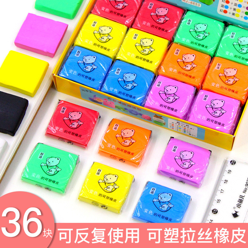 可塑橡皮擦 拉丝 彩色无软橡皮泥可变色益智玩具创意橡皮泥新款