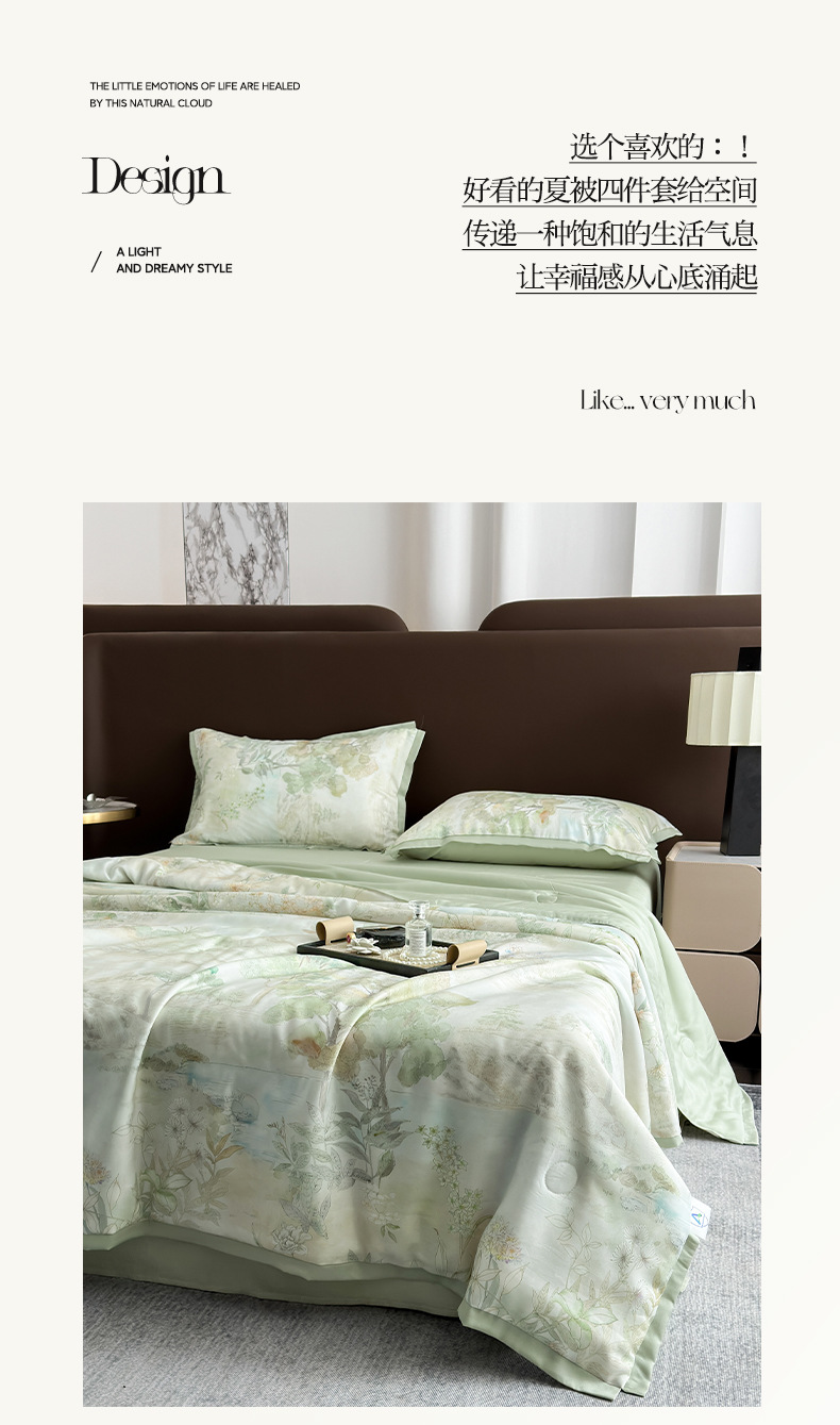 - 夏被四件套(2.0夏被+1.5床笠+枕套*2)
