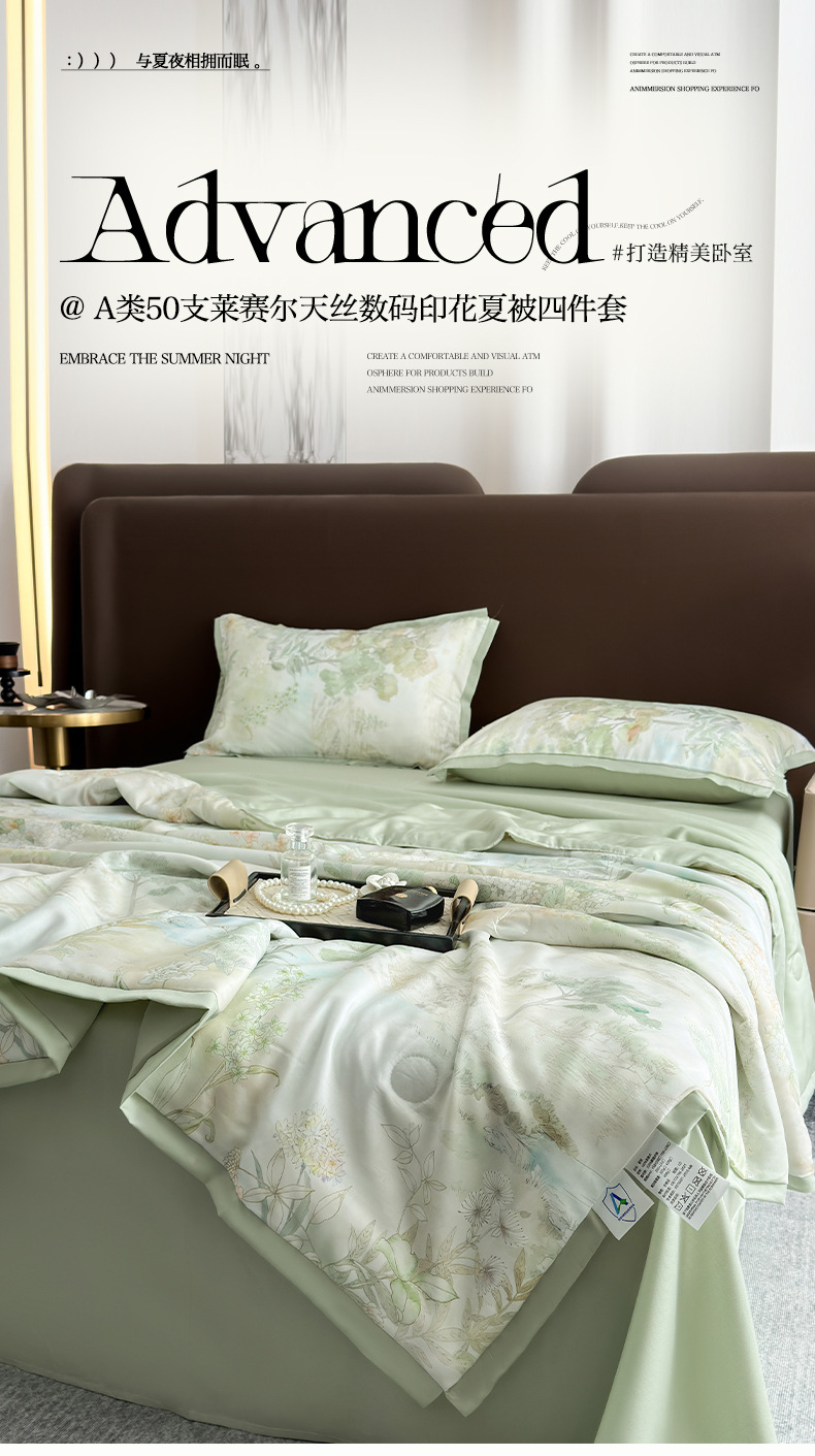 A类天丝夏凉被四件套双面冰丝凉感夏被可机洗水洗空调被薄款被子